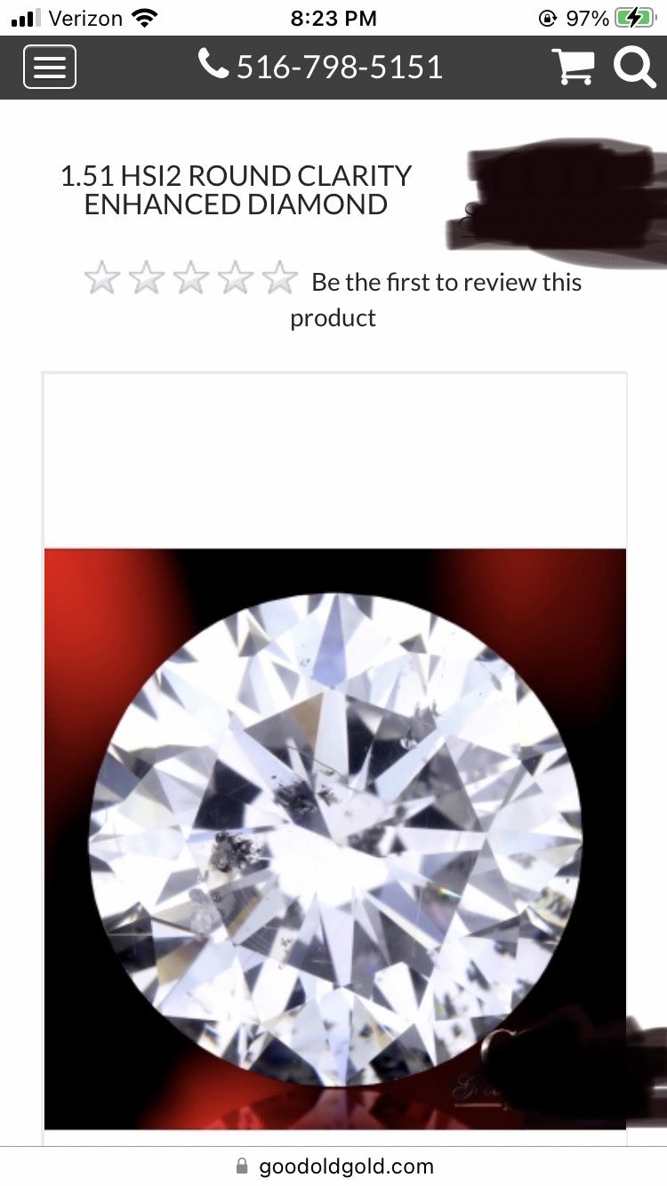 1.51 Carat Round Brilliant. Near Colorless ( G-H) Clarity enhanced . This Beautiful Diamond was still certified by GIA and comes with the certification papers. Local Distinguished Jeweler offered to sell it for me for $5700. Id rather sell it myself. I will accept a reasonable lower offer. Transaction to be completed in person at my bank, by cash only. I will bring a Diamond tester with me, and the paperwork. Anyone looking for a natural Diamond this size knows what they sell for. The enhancement is not a negative, it is a positive; it allows a large Diamond like this to be priced very reasonably. Feel free to ask any questions.
