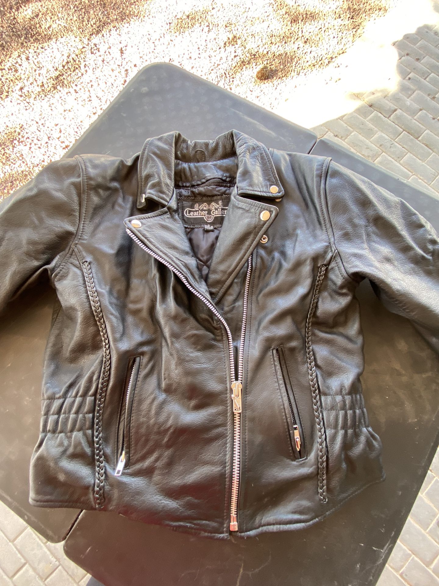 Leather Jacket (Large) and chaps for women Chaps fit women’s heights 5’5