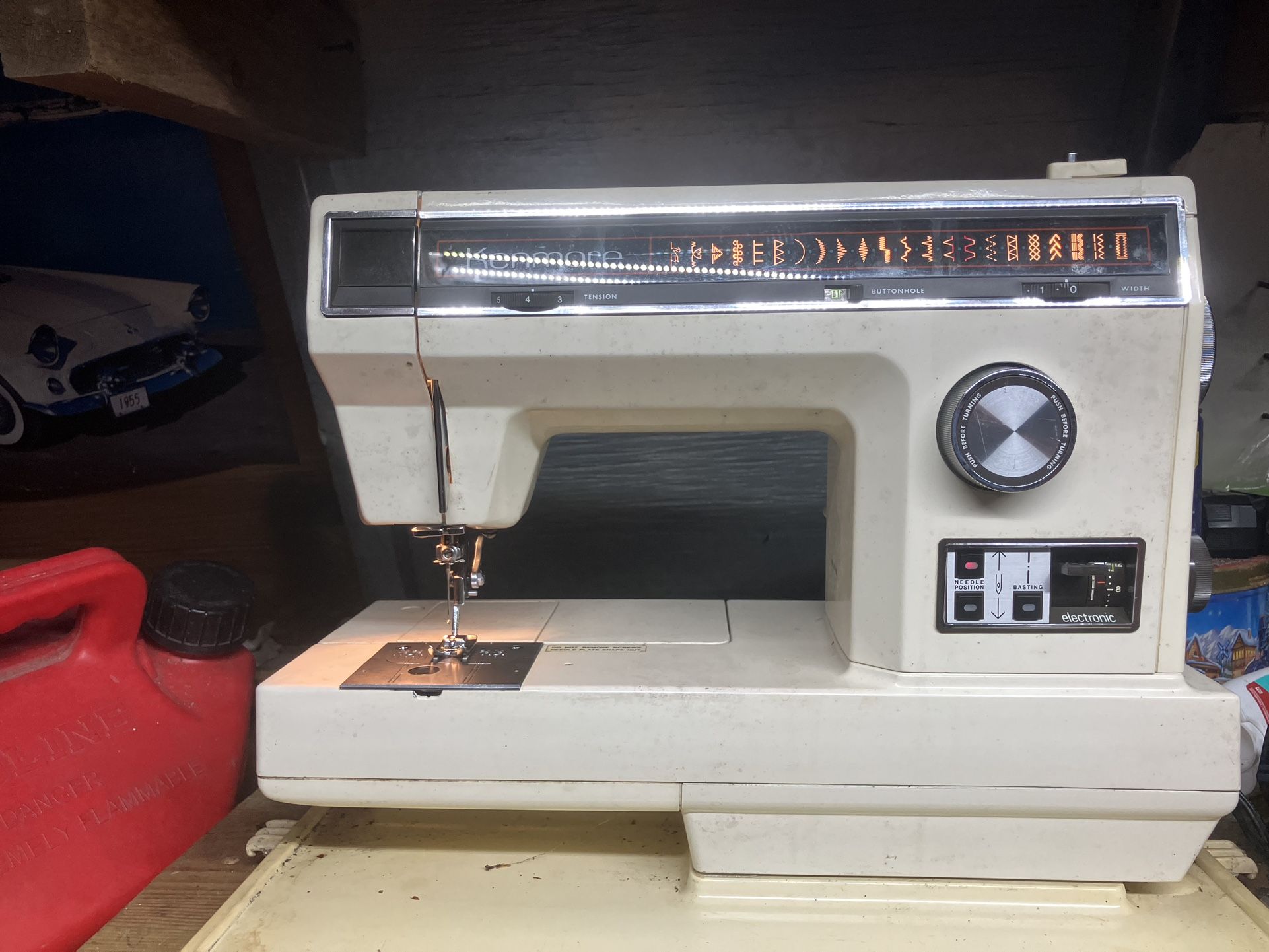 Old sewing machine good condition runs perfect used twice. Asking $55.00 for it or best offer willing to negotiate price