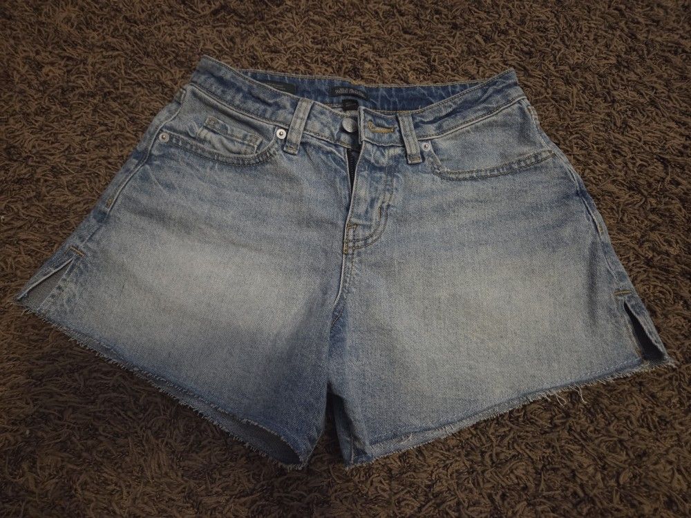 Size 0 mid-rise denim shorts with a 4" Inseam. New only tried on. Daughter ripped tags off before telling me that they didn't fit. Asking $5. Pick up in Chino. Cross streets are Euclid/Schaefer