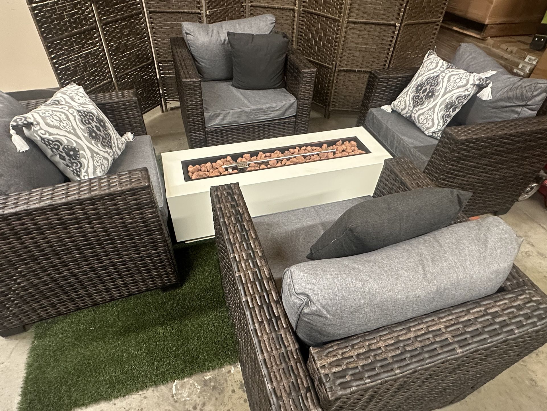 Grey Outdoor Patio Furniture Set With Fire Pit