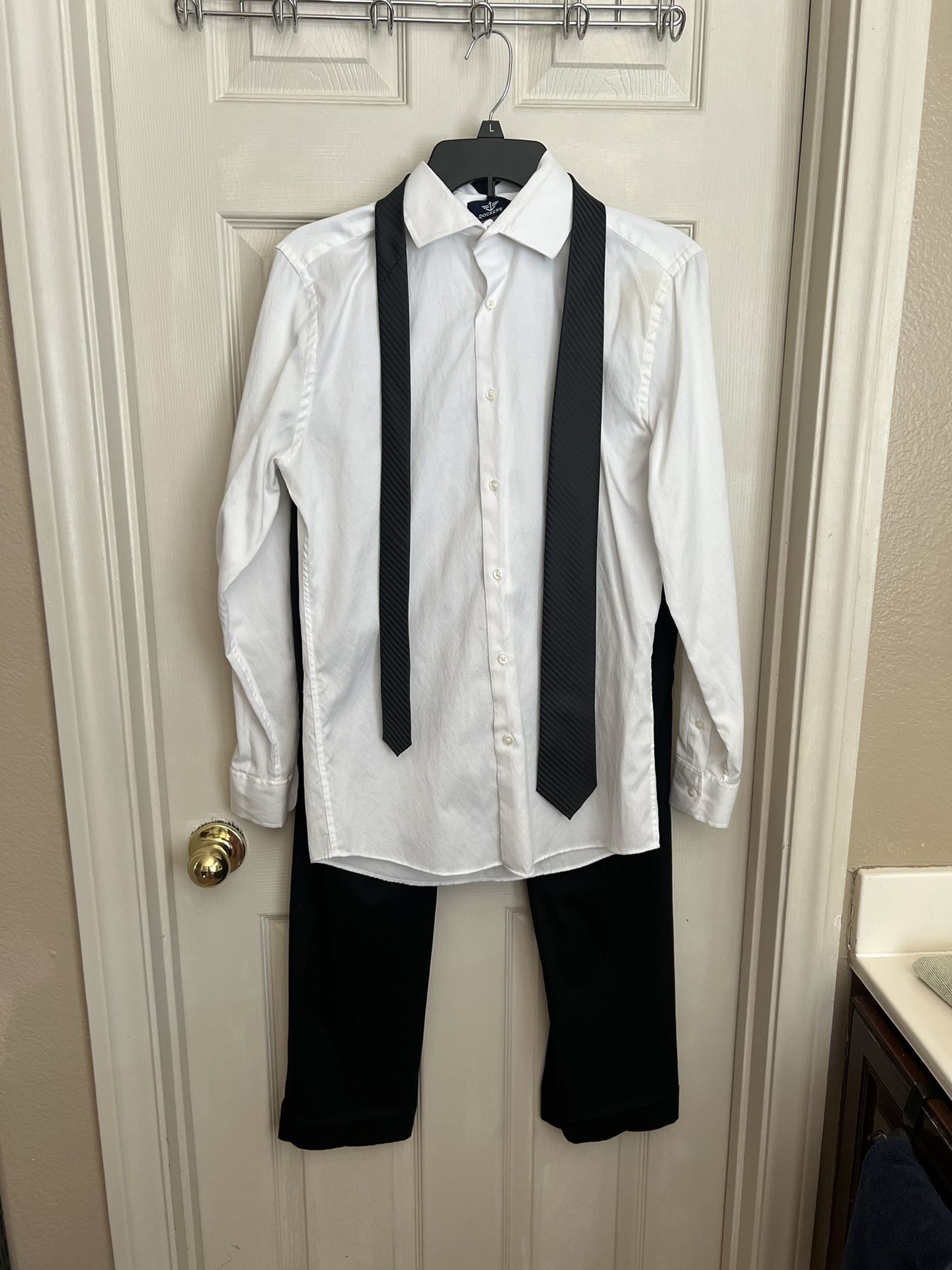 Camisa De Vestir Blanca DOCKERS Size S 14/14 - 1/2 32/33 , Pantalón De Vestir Negro CALVIN KLEIN- Size W30 L30 , Corbata VAN HEUSEN