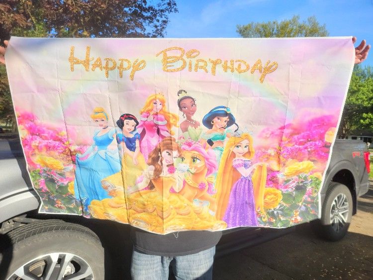 -LARGE Disney Princess Banner -(2) Medium Size Letters Dinsey Banners -New Pink Table Cover -Ziploc bag full of unused balloons -10+ Disney Princess Birthday Gift Baggies -15+ New Colorful Mirrors from Amazon This listings purpose is to help a special someone that has a special birthday comin up and has been effected by harsh times. $25 For Everything Pickup Elyria