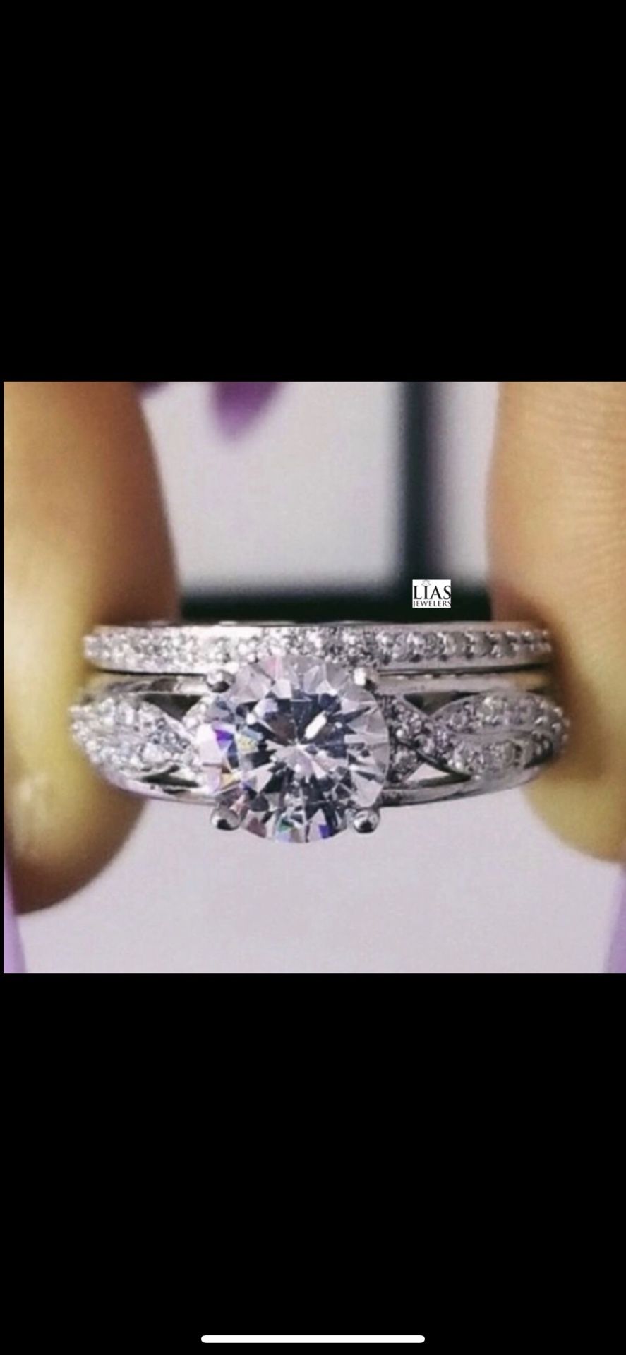 Brand new 18 k white gold filled wedding ring set, engagement ring. Available in most sizes! Also have men’s wedding ring, men’s wedding band, bridal set, engagement ring , wedding ring set
