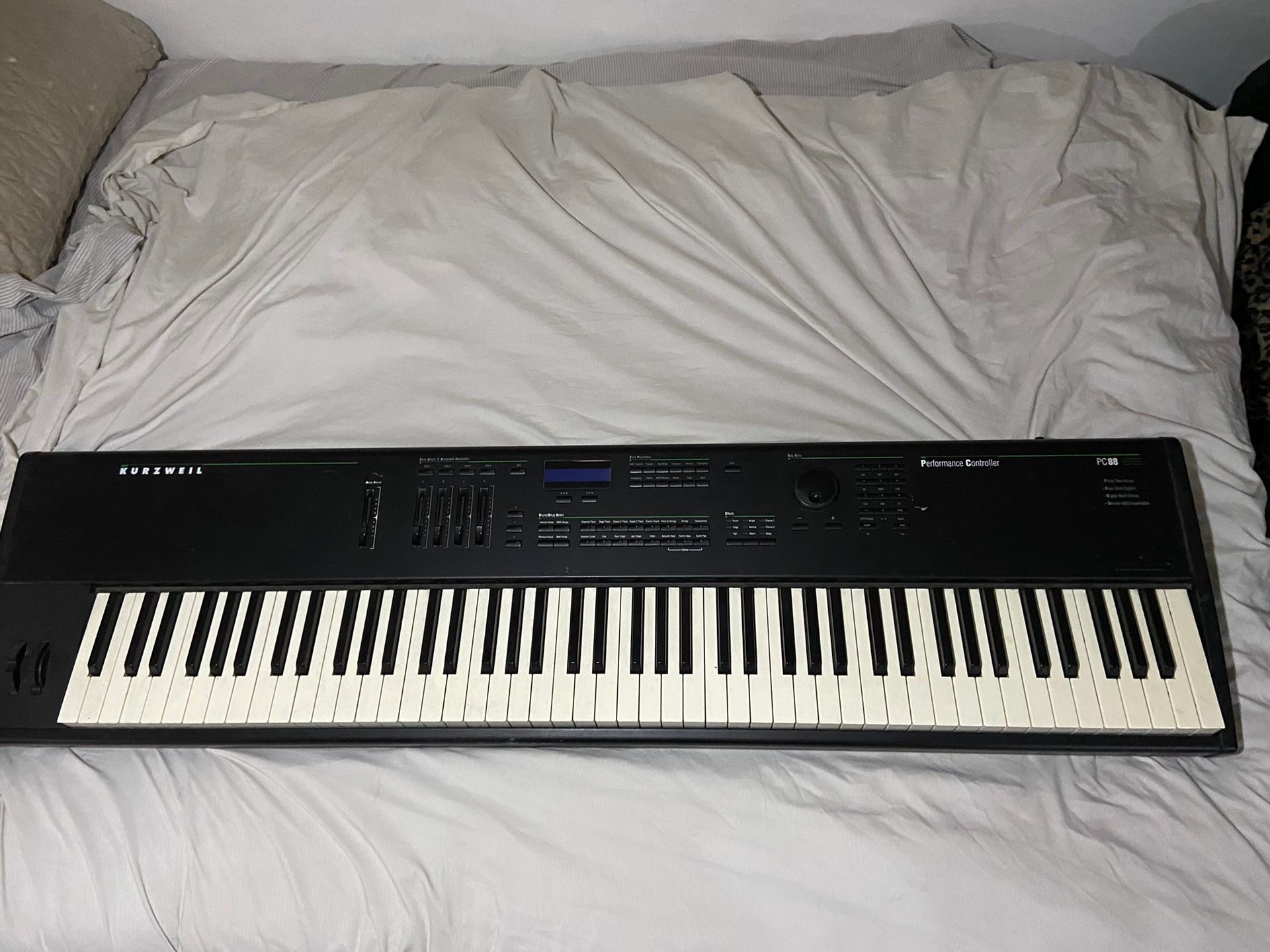 Kurzweil PC88 Weighted Keyboard comes with power cord. I have a stand and a speaker that are negotiable as well.