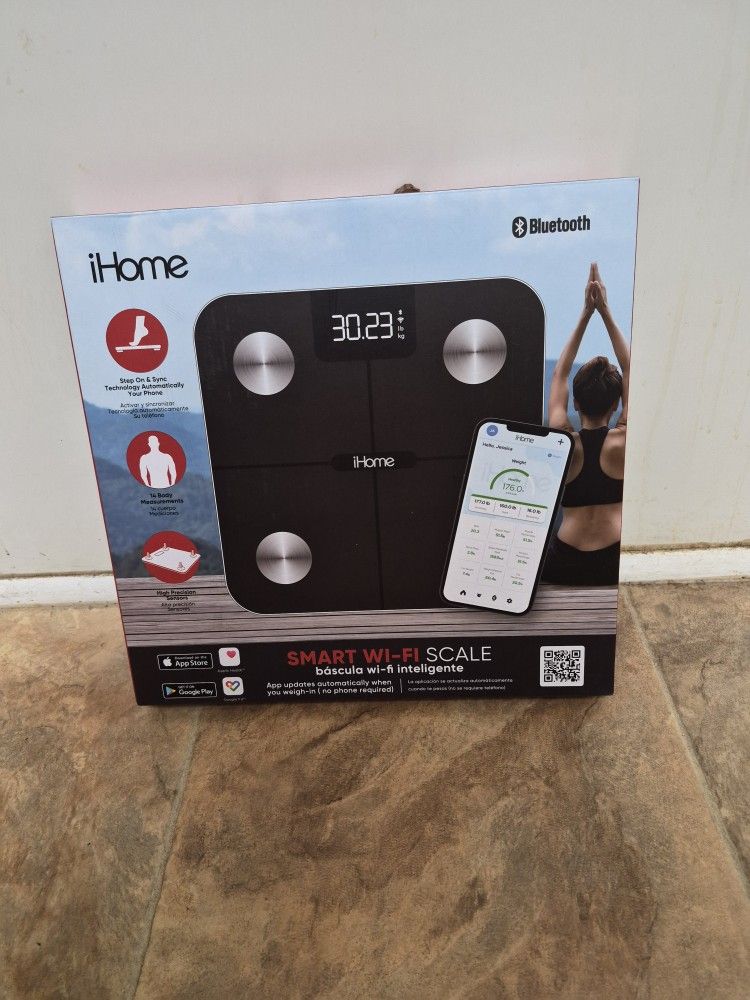 This is brand new, The box has been opened,composite scale. It gives you all types of information when you step on the silver pads for example your muscle mass body fat water weight and so on you can look it up on the Walmart app it retails for $24.98 Please make me a reasonable offer.