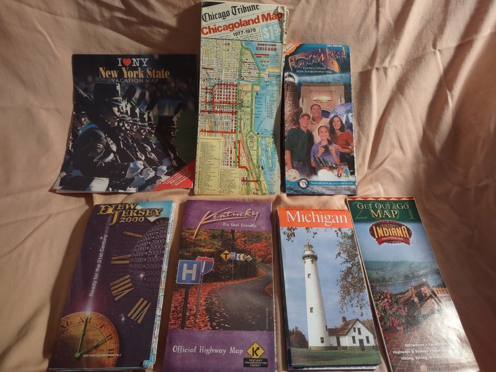 7 Different Road Maps From The 70s To 2000s.