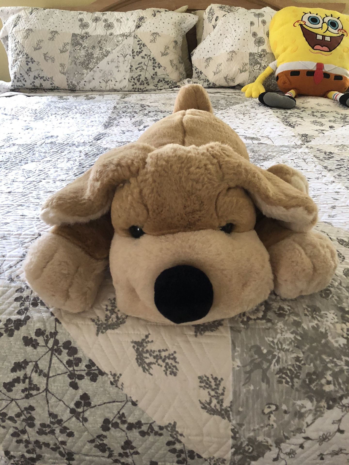 Soft and cuddly Nice and clean. No stains Measures 21 long 17 wide