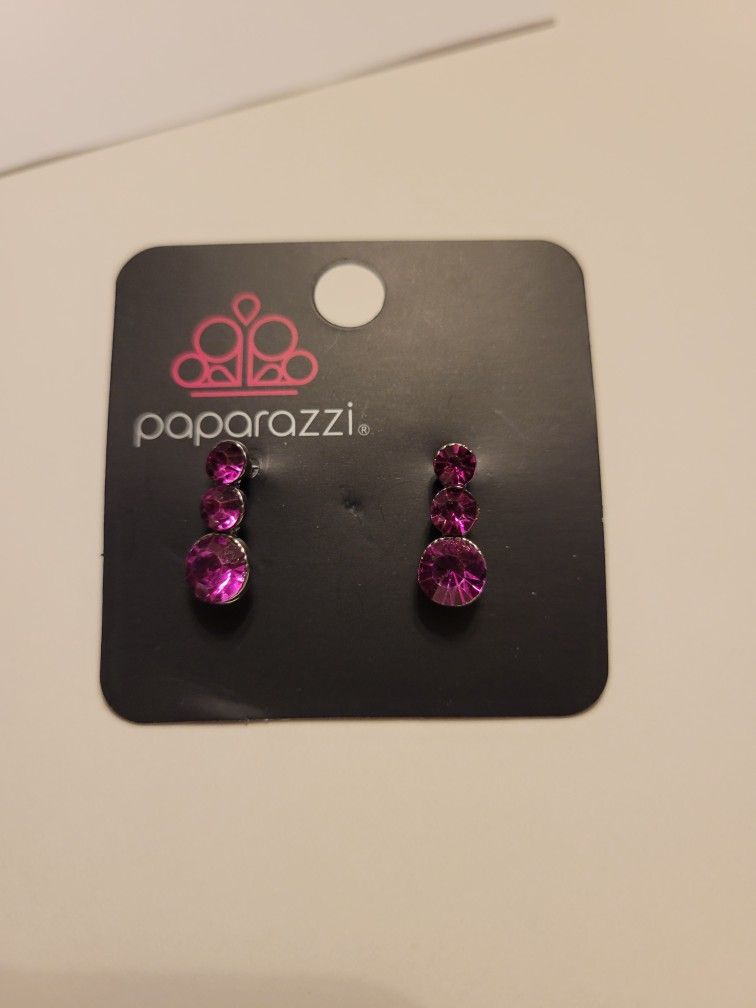 Dazzling Paparazzi earrings with fuchsia stones. Ideal for a chic look.