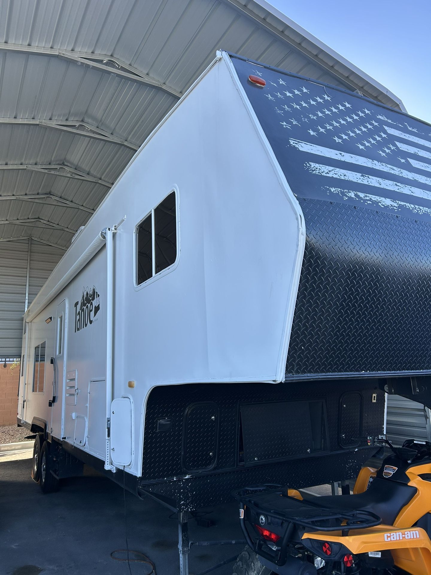 Selling this fully restored 5th wheel 33ft Toy hauler , new AC, new tires , New fuel station system, new flooring , new water heater, new water pump and in great condition!(GARAGE DIMENSIONS 78inches tall, 78 inches wide (between wheels ),98inches wide wall to wall and 175 inches long ! Went through the whole trailer !! only used 4 times since purchase in 2021 asking $17,500 OBO