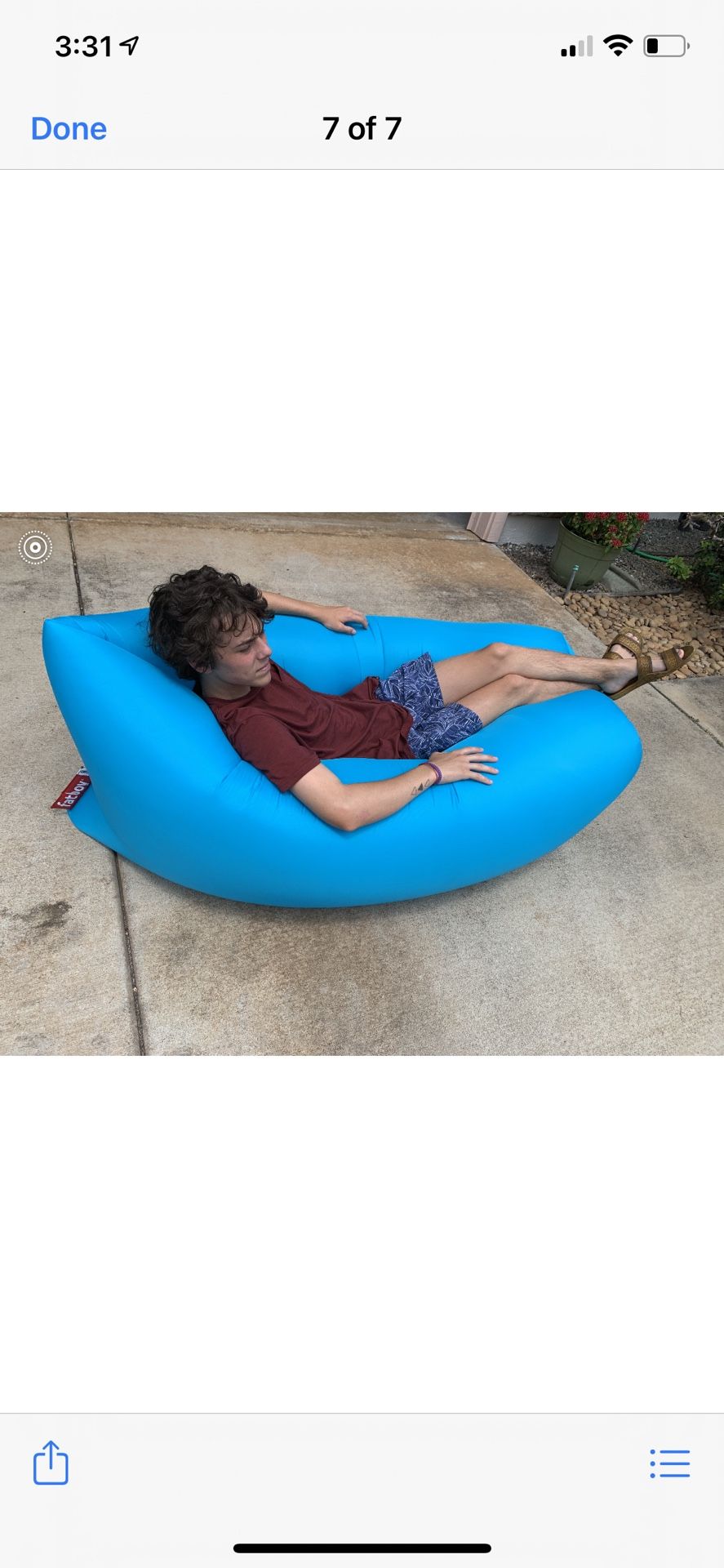 This fat boy beach lounger or take any wear for extra seating and comfort is in perfect condition. No stains or tears.