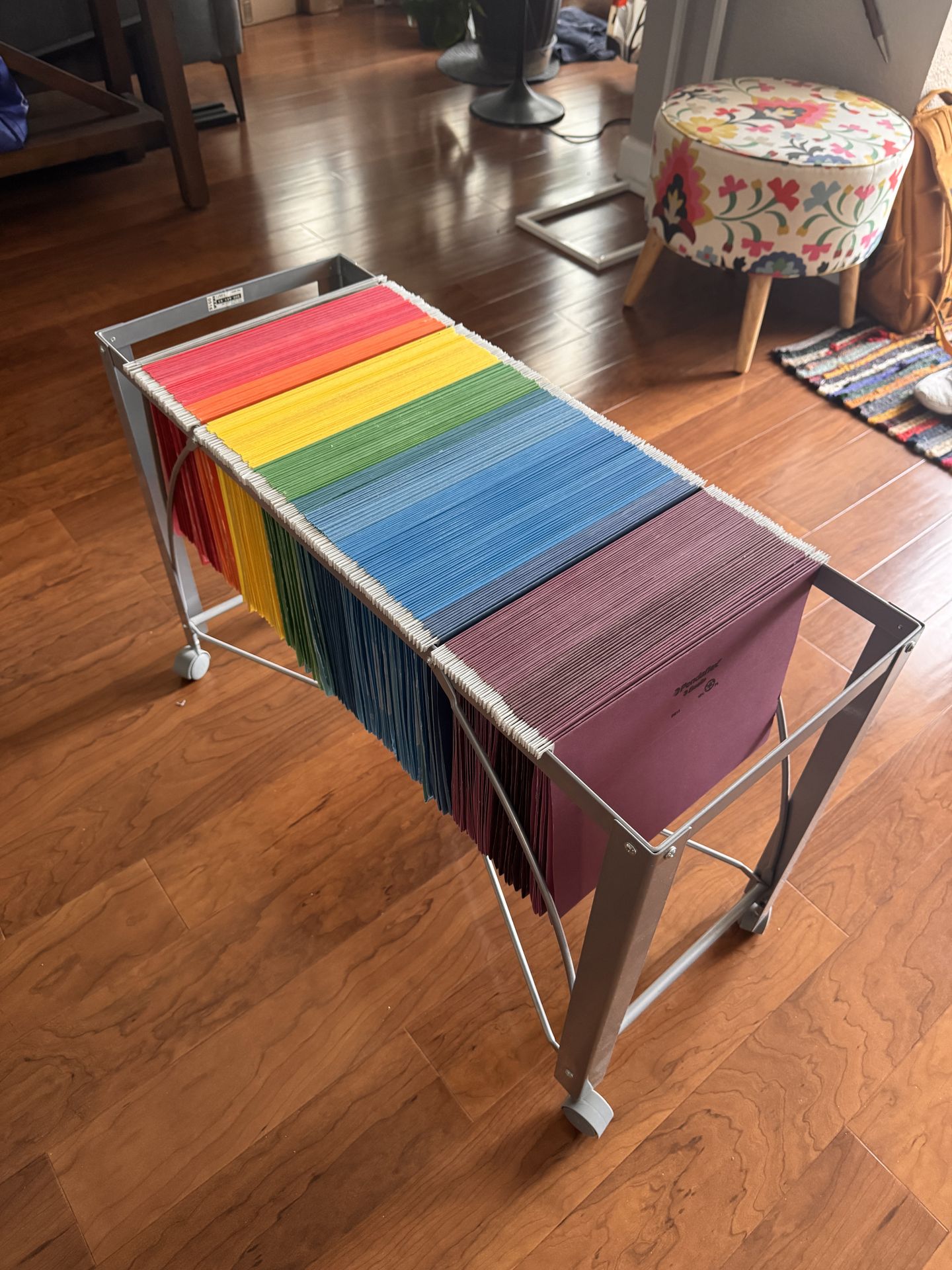 Hanging folders + rolling cart on wheels