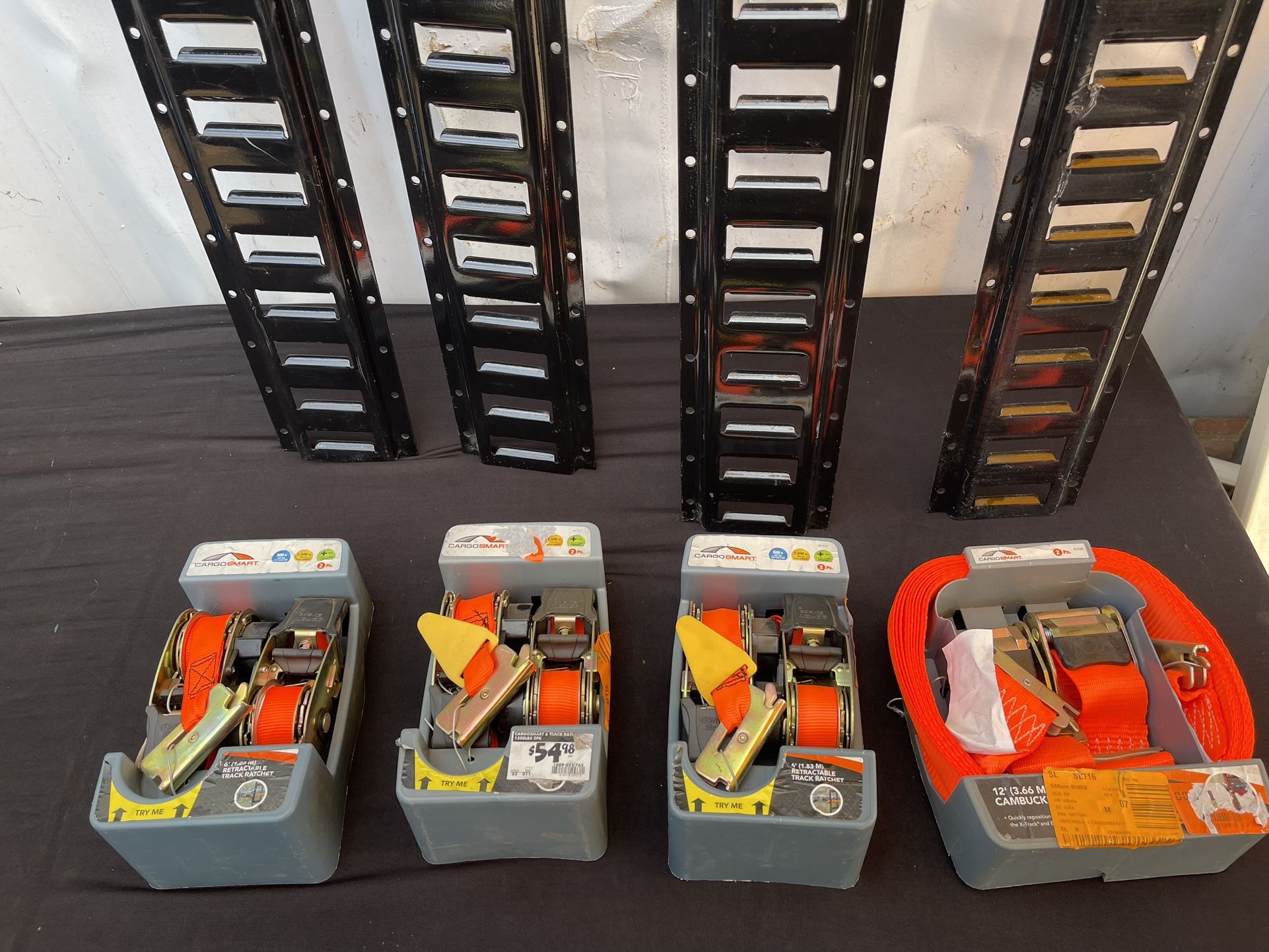 (3) 6 ft. Orange Retractable Ratchet Tie Down Strap for E-Track and X-Track, 500 lb. Safe Work Load - 2 pack (1) 2in. x 12 ft. 2000 lbs. Orange Cambuckle Ratchet Strap for X-Track/E-Track Systems (2-Pack) (4) 5 feet E-Track rails $200 for All *NO Offers!