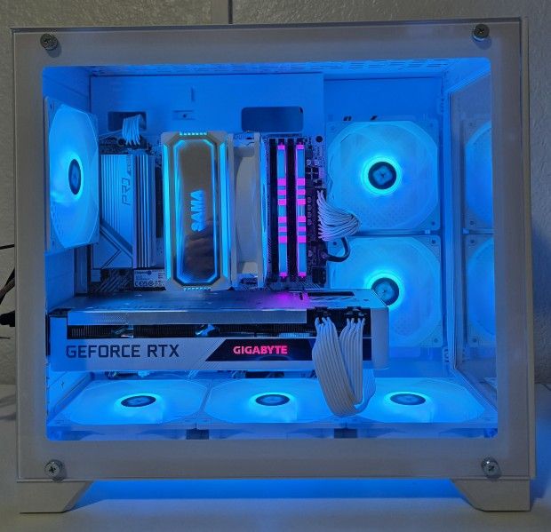 Super nice all white Gaming PC that can run anything you throw at it. It'll run any recent game at max graphics and high fps. Perfect for streaming, editing and more! NO TRADES!! Specs: ✅️Ryzen 5 5600X ✅️AsRock B550M Pro SE ✅️Gigabyte GeForce RTX 3070 Vision ✅️Oloy 32GB 3600mhz CL18 RGB ✅️Kingston 1TB SSD Nvme ✅️SAMA CPU Air Cooler ✅️Corsair CX 750F RGB 80+ Gold ✅️Windows 11 Pro Asking $1,100