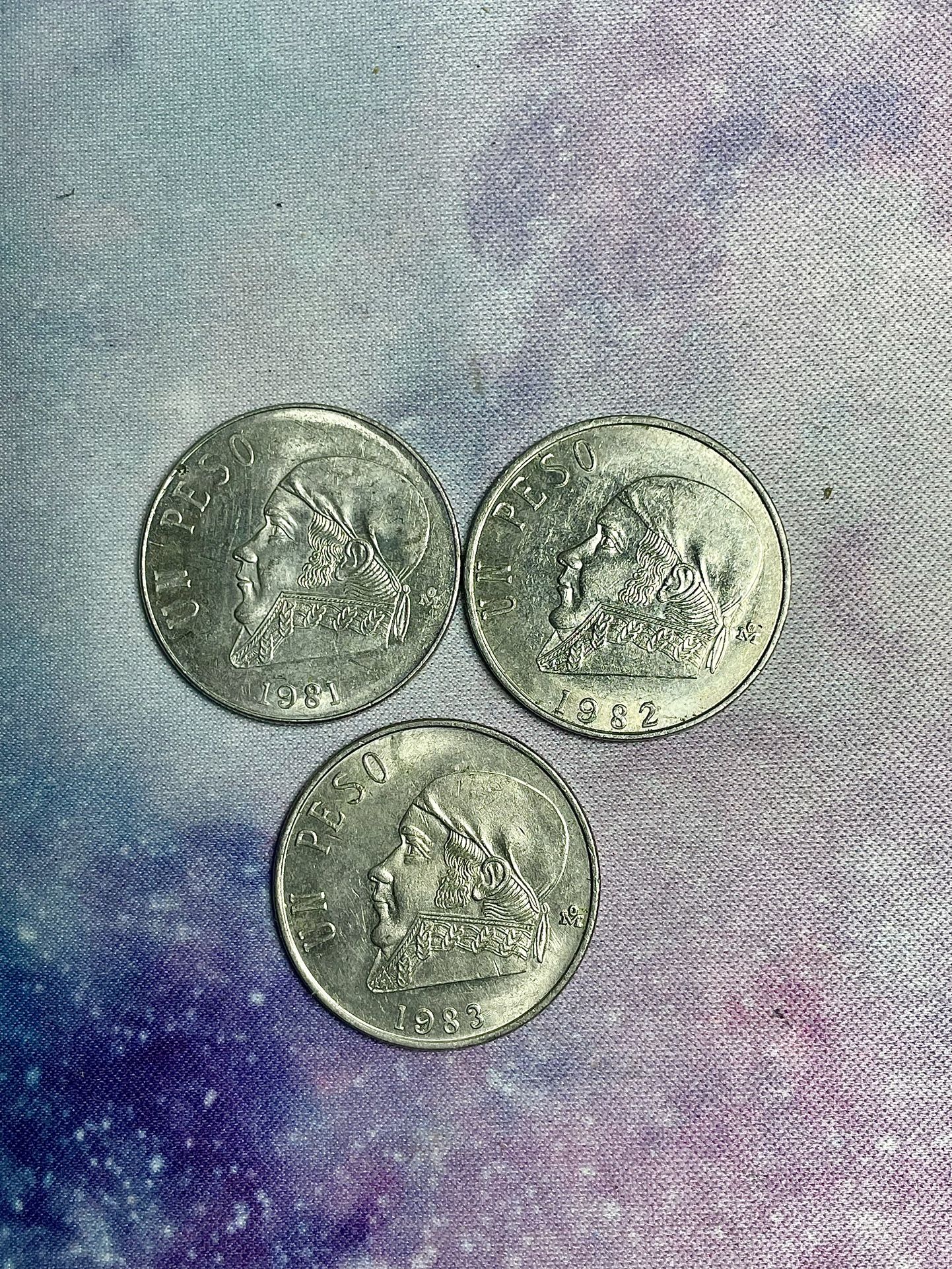 1981 un peso 1982 y 1983 un peso José María Morelos y Pavón Armas nacionales (Águila sobre nopal mirando a la izquierda con serpiente en el pico sobre