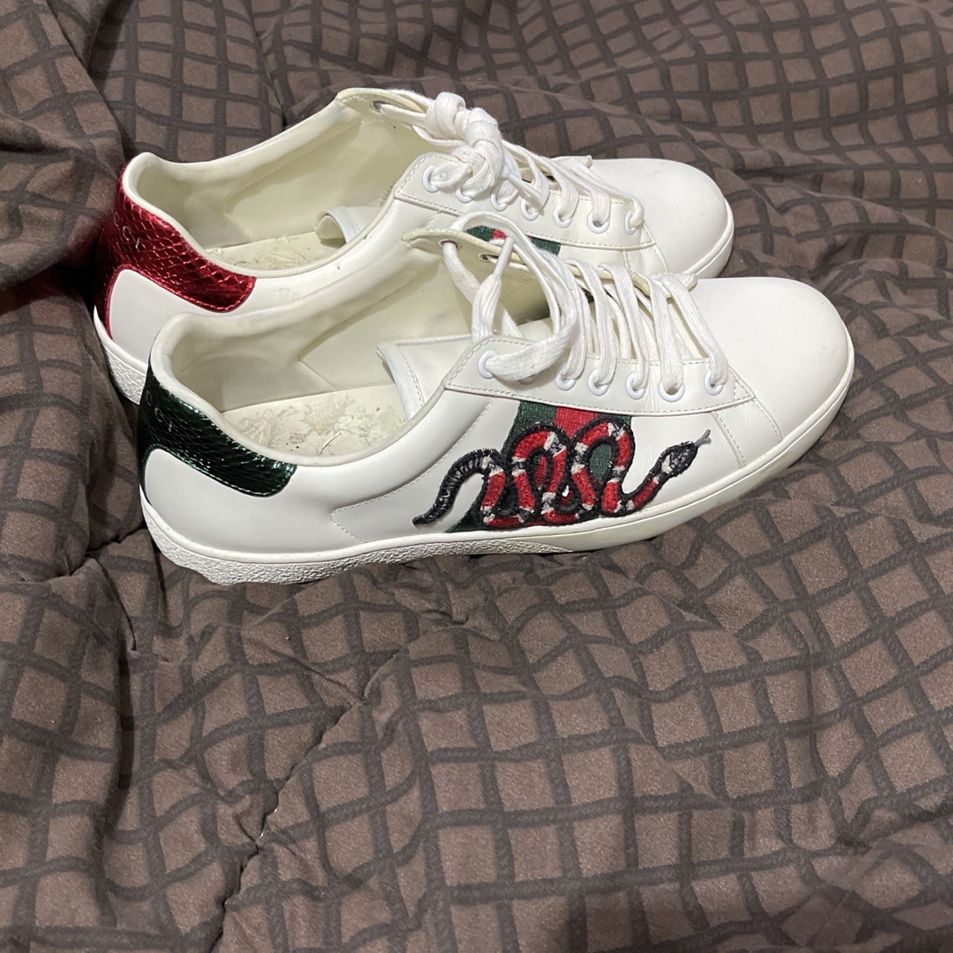 Used, bought these shoes for 780$ but I’m selling half priced since there used as you can see I do not clean the shoes since there very delicate for that I’m taking 20$ off and because of some scratches too, you just have to clean them very good these shoes retail 800$ also if you noticed the souls inside them are not damaged it’s just some paper that got stuck when I put them to launder in washing machine the shoes are authentic, comes with box and papers, accepting trades