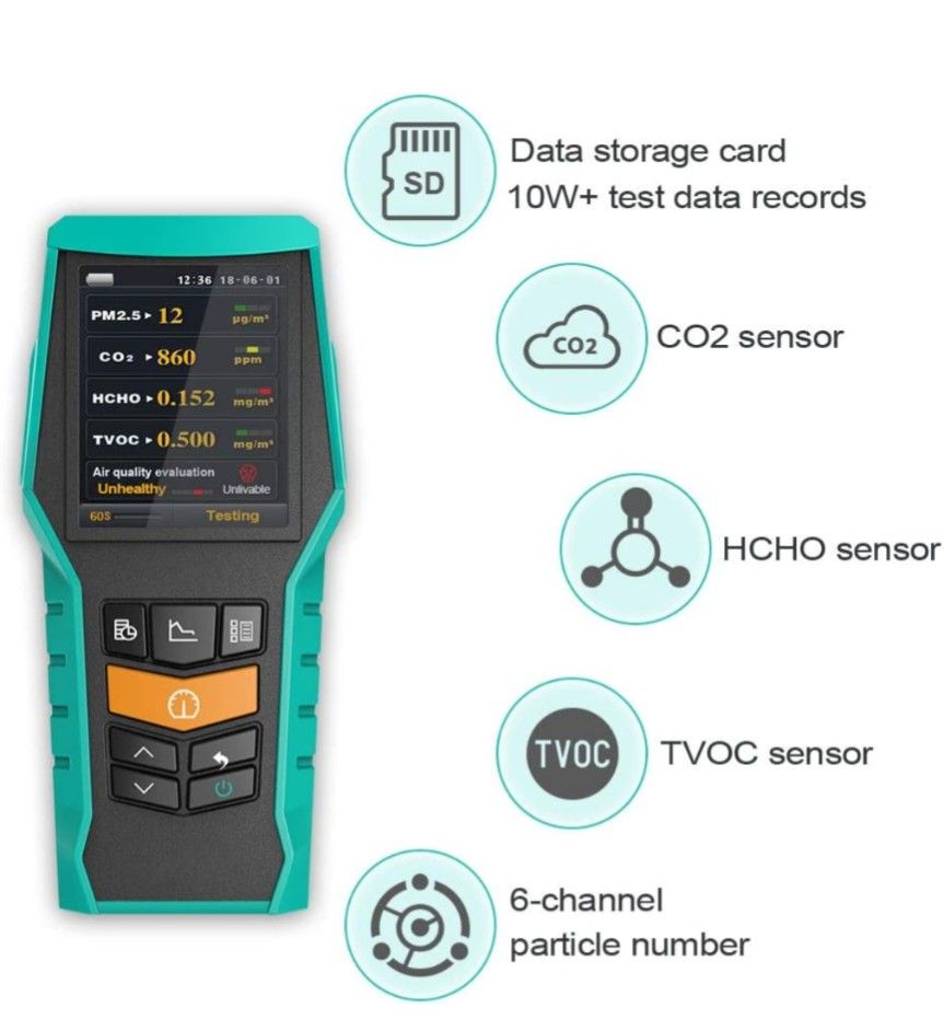 Smart 128s Air Quality Monitor Indoor CO2 PM2.5 TVOC Meter Formaldehyde HCHO Detector VOCs Pollution AQI Tester PM1.0 PM10 Dust Particle Counter Data