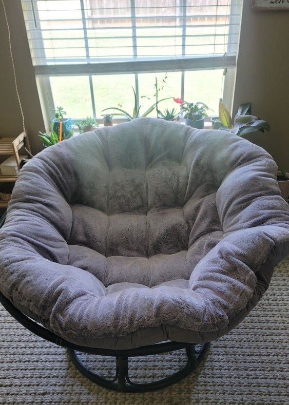 New, perfect condition papasan chair and cushion. Too big for the space I needed it for. Very comfortable. Great quality. Thick cushion can also be used to sit on the floor. Firm on price Must pick up