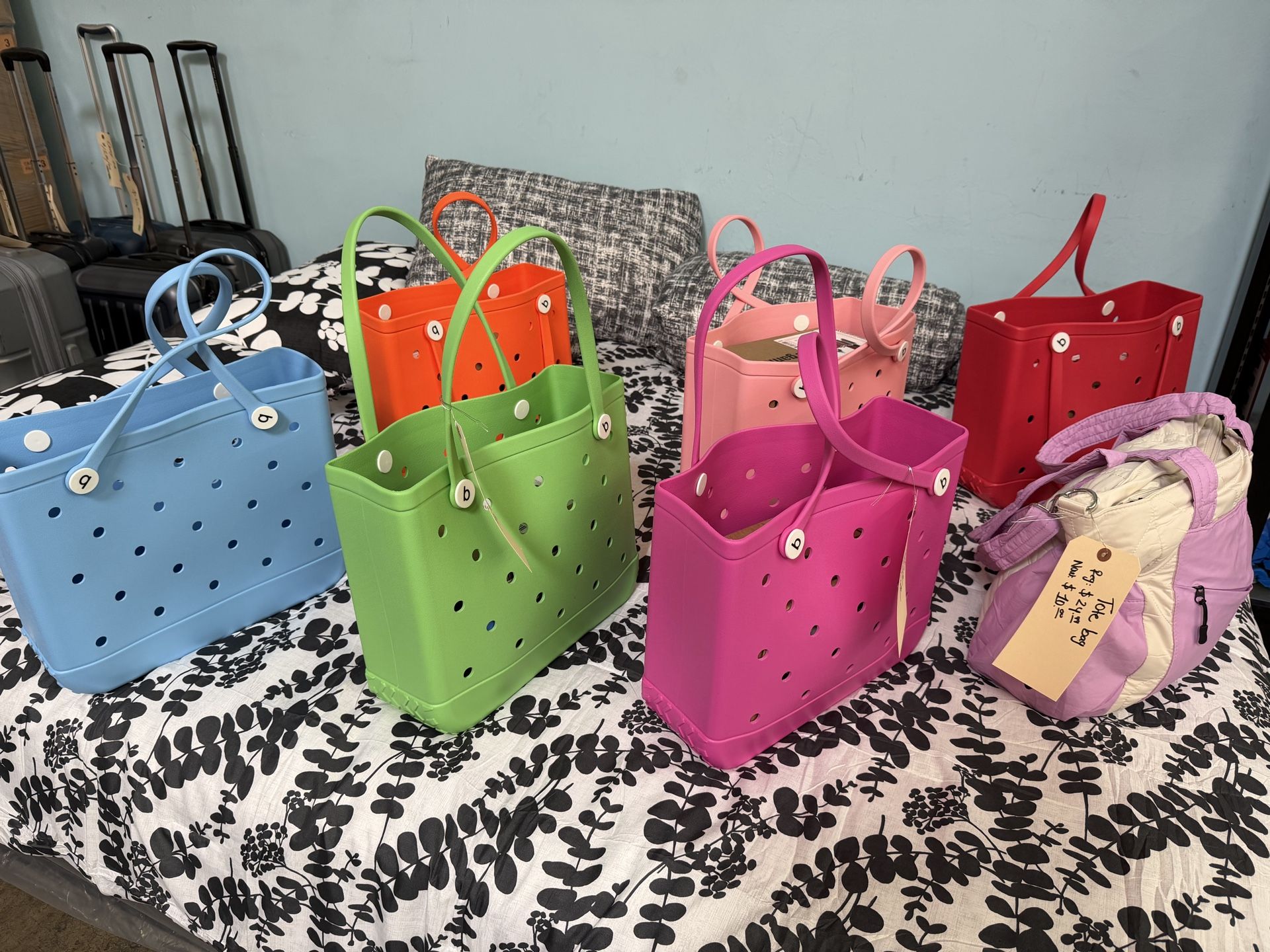 Wholesale Beach Tote Bag, open to public too! Size M: 15”x5.5”x12” Monday to Friday 9am-5pm (closed on weekend) 2427 Pratt Ave., Hayward, ca 94544