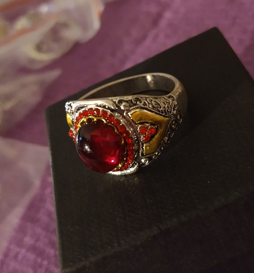 Mens two- toned Spectacular Red Stone and lots of small round Red CZs Size; 10 Color; Silver /Gold Weight; 4.97g Pick-Up in Gladstone
