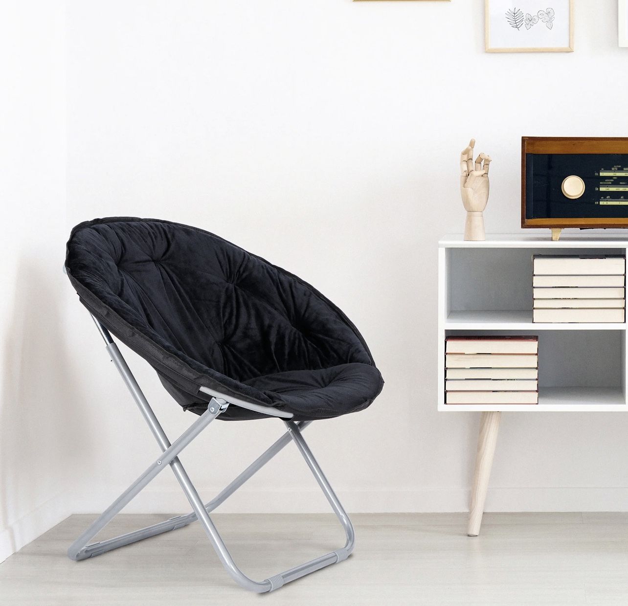 Folding Saucer Chair, Adults Kids Portable Faux Fur Saucer Chair, Black