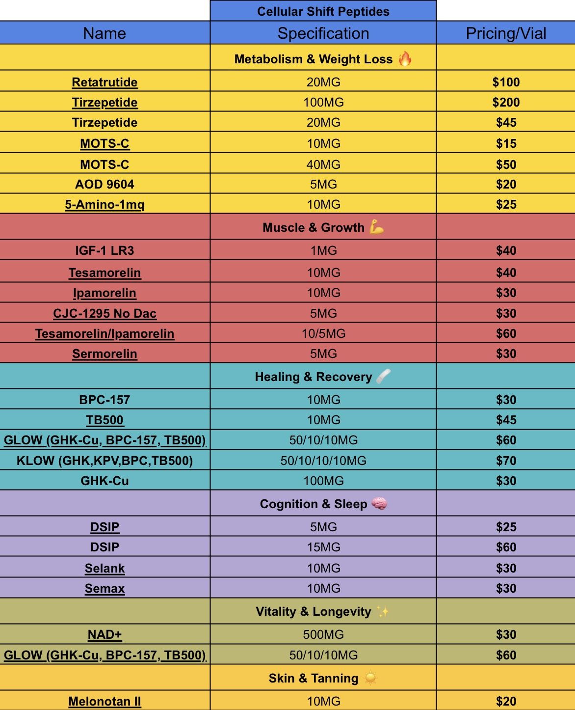 NAD GLOW KLOW GLP1 Retatrutide BPC157 TB500