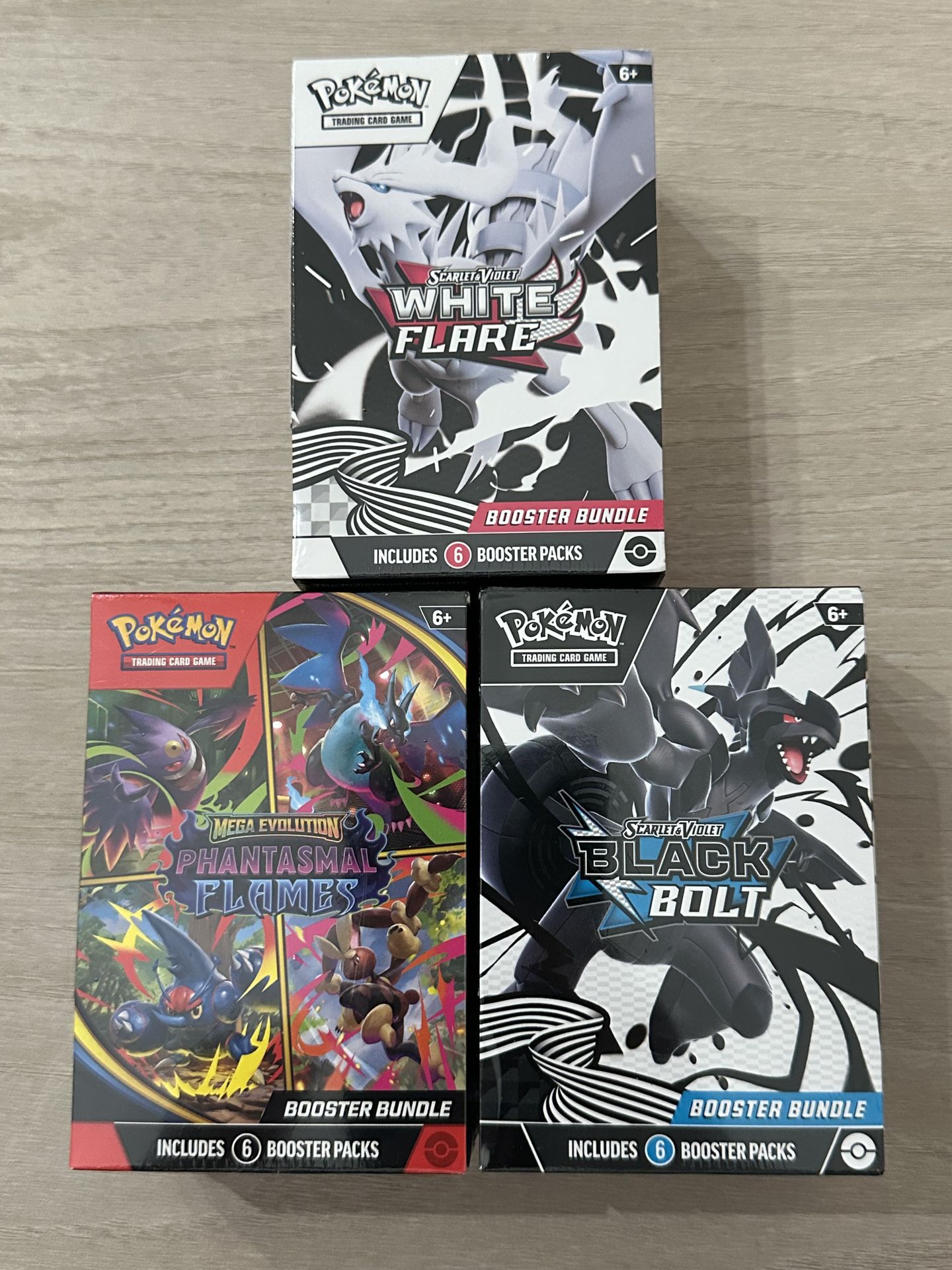 Black Bolt Booster Bundle $50 White Flare Booster Bundle $50 Phantasmal Flames Booster Bundle $50