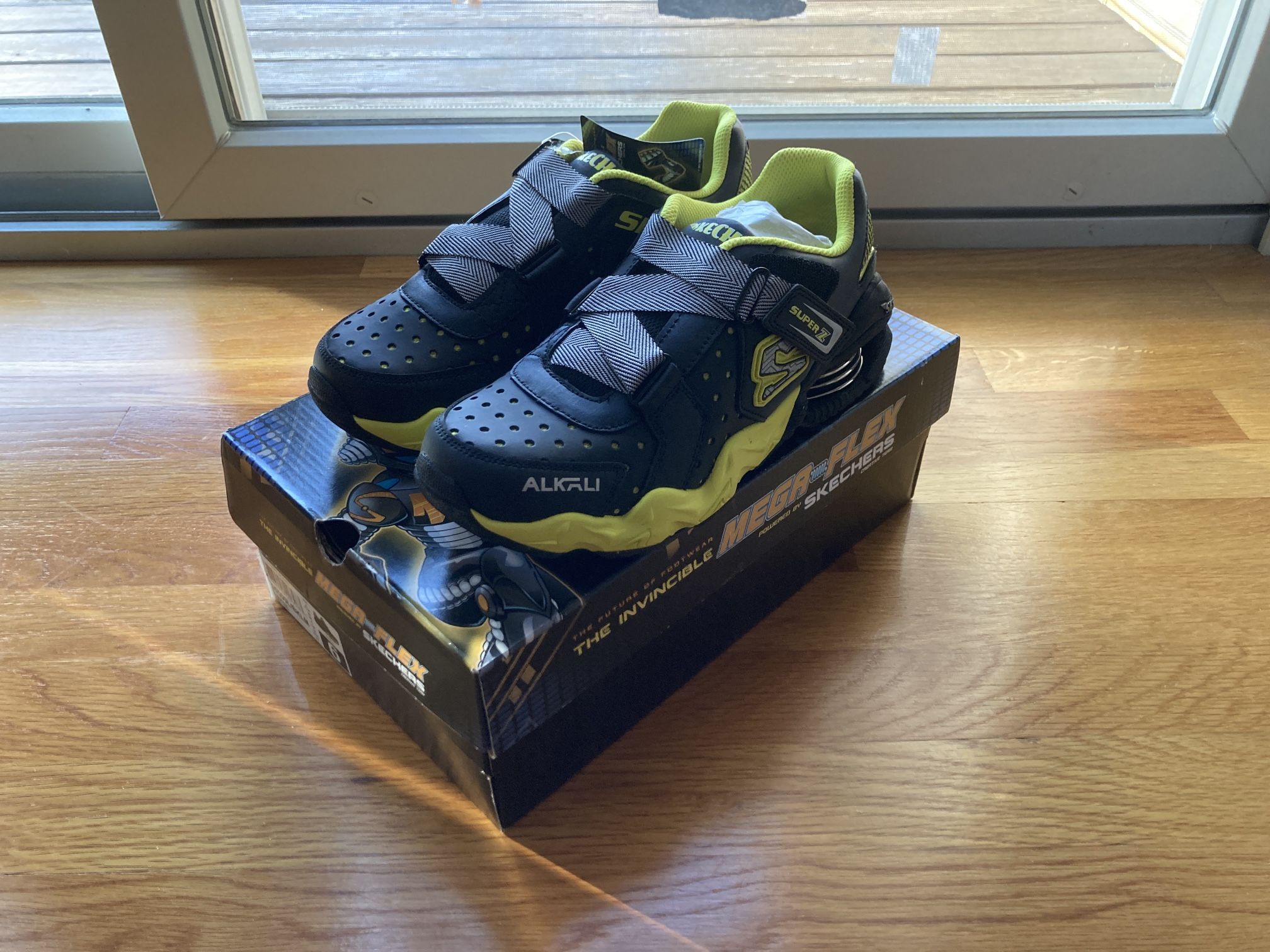Skechers MEGA FLEX Spring Heel 95550L/BKLM Alkali Black/Lime Boys Size 6.0 New in Box condition.