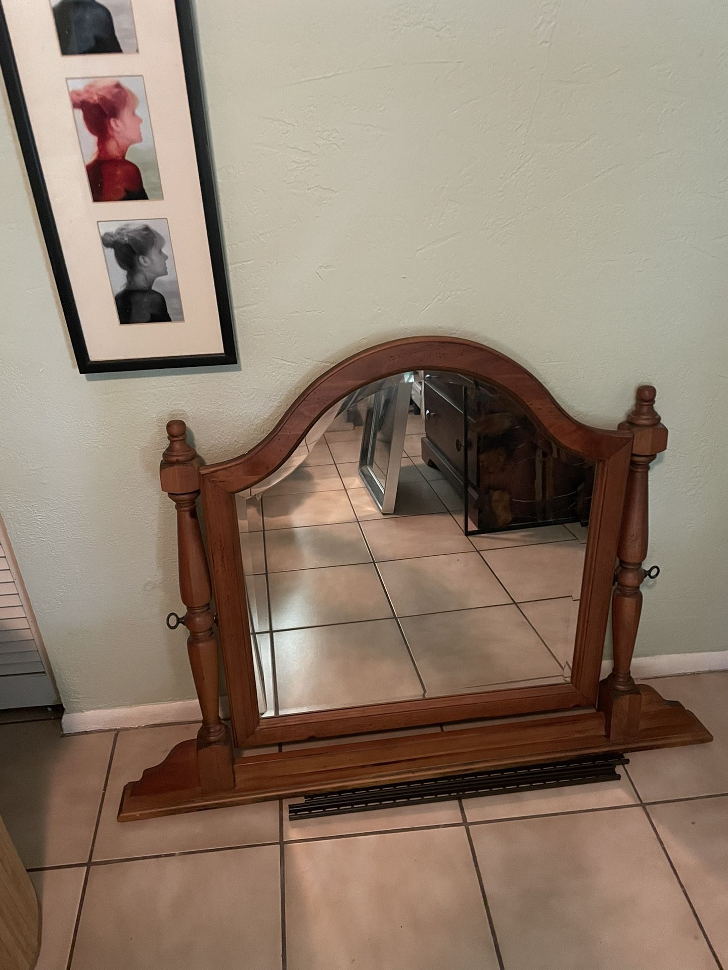 Dresser mirror victorian style. Real maple. Metal tracks and screws to easily install on any dresser or bureau. $50 or best offer