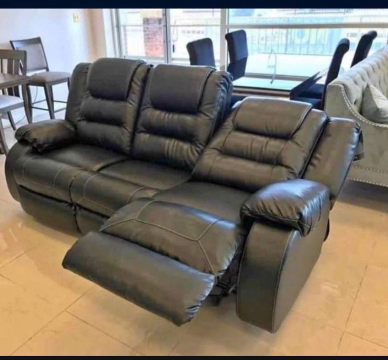 Modern Black Faux Leather Reclining Sofa 💥 Brand New☄️ Delivery Available✅ Couch / Living Room 👍