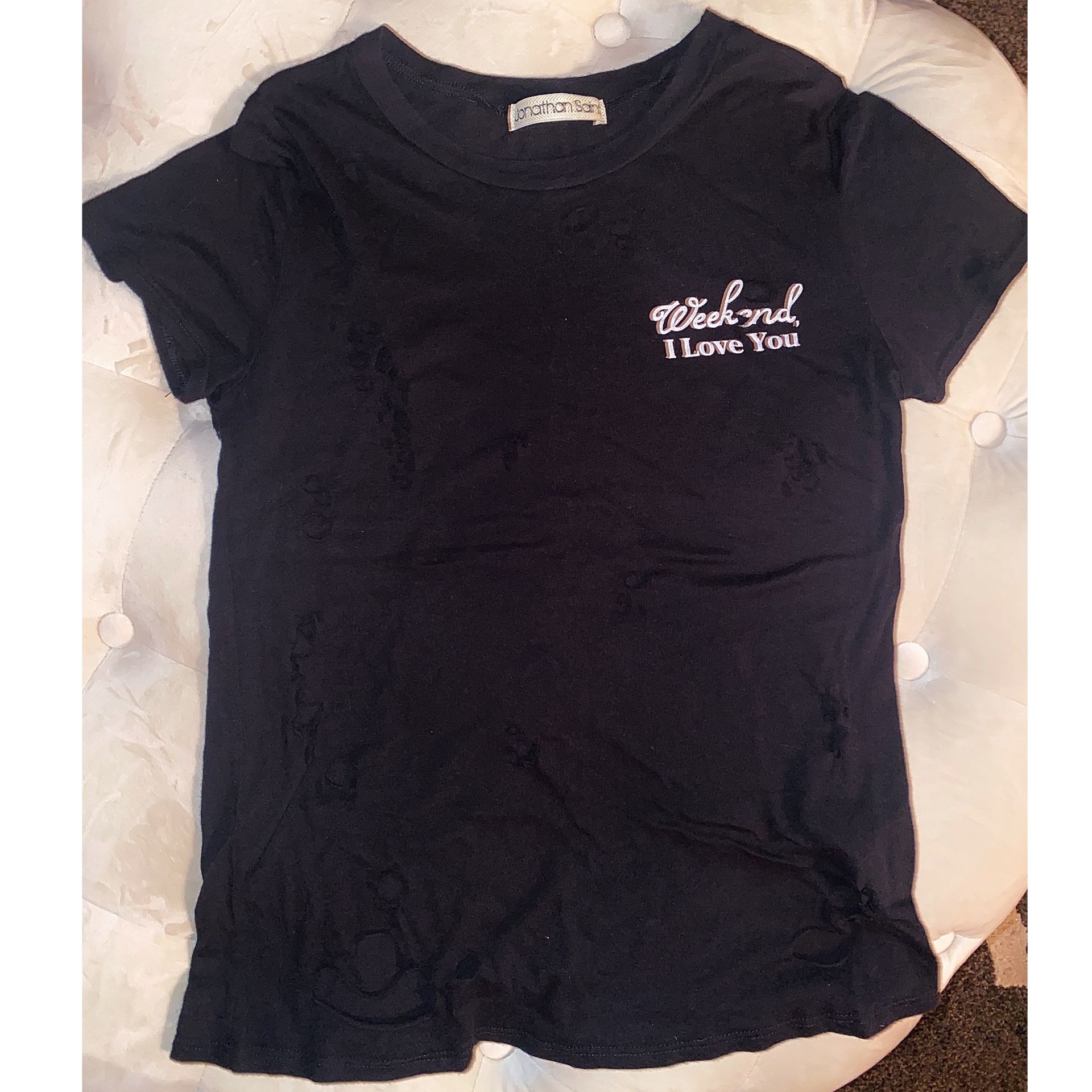 JONATHAN SAINT BLACK BURN OUT TShirt VERY DISTRESSED “WEEKEND I LOVE YOU” SIZE LARGE - fits like medium Like new - worn a couple of times *This shirt is naturally VERY distressed with burn out holes all over the front*