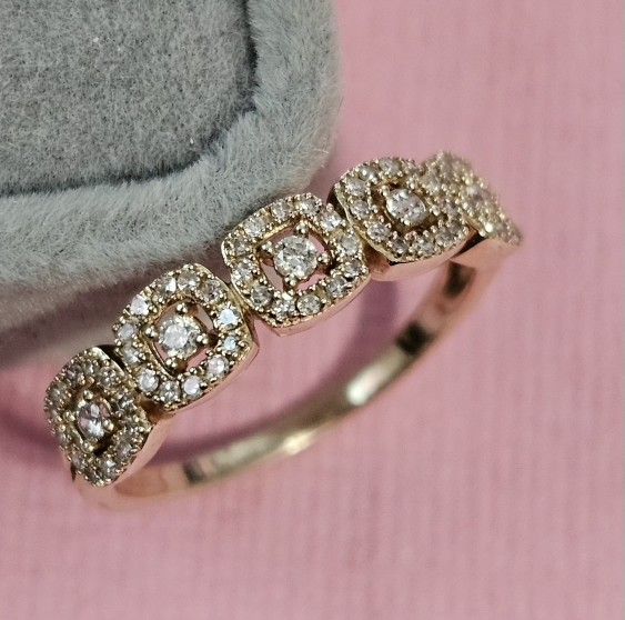 Delicate 10k yellow gold band ring with real diamonds. Everything is shown on pictures. Bought from Macy’s.
