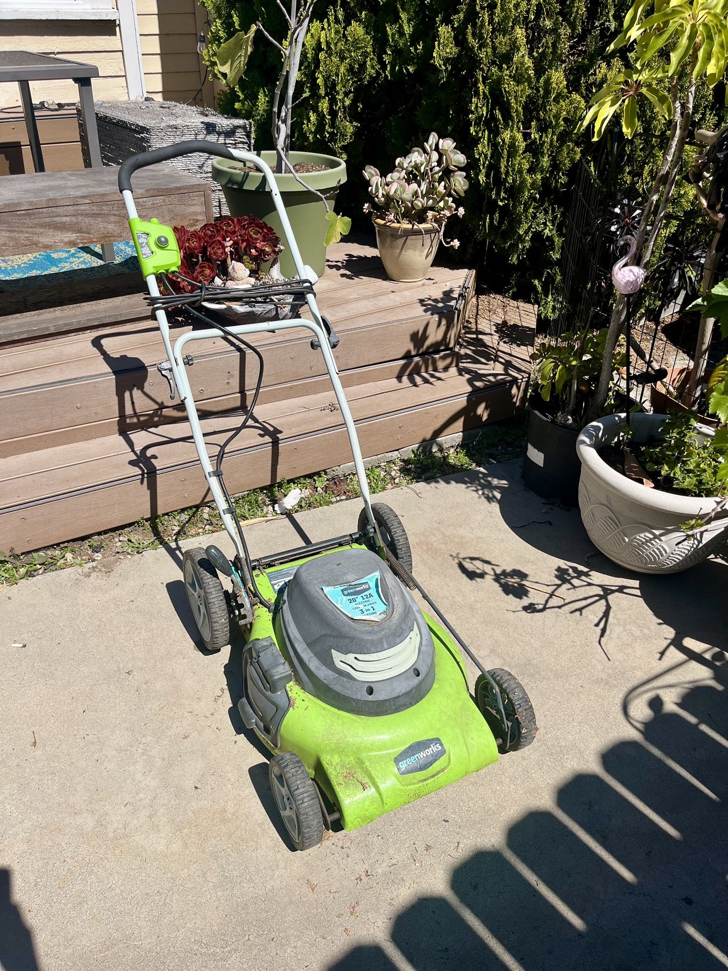 Free corded electric mower. Works well, only catch is it starts as soon as you plug it in.