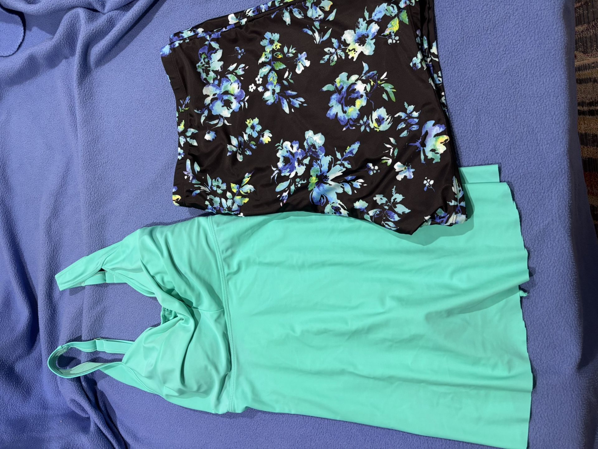 Cute top pull up sides. Boy short bottoms. Teal and black. Size 24w