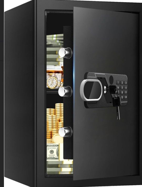 Brand new in box. Never used. Can fit all your valuables. Comes with bolts to secure it. Can fit laptops, guns, cash and jewelry. Has 1 removable shelves and a light. 3 ways to open. Combination + 2 keys + usb back up. Comes with all original paperwork. Pry-resistant hinge bar, 3 live-locking bolts, steel construction for heavy duty protection from fire and water. Alarm Combination, UBS back up and 2 keys. fire safe with secondary locking system for strong security. It measures outside 14 inches wide by 12.2 inches deep and 20 inches tall. Never used. Serious inquires only can call. Cash or Venmo only on pick up no scams or codes. $649 new. Smoke and bug free home. Conveniently located 45239 off Galbraith across from Clovernook Country Club. Inventory control: TEA(contact info removed)J36DEC1525