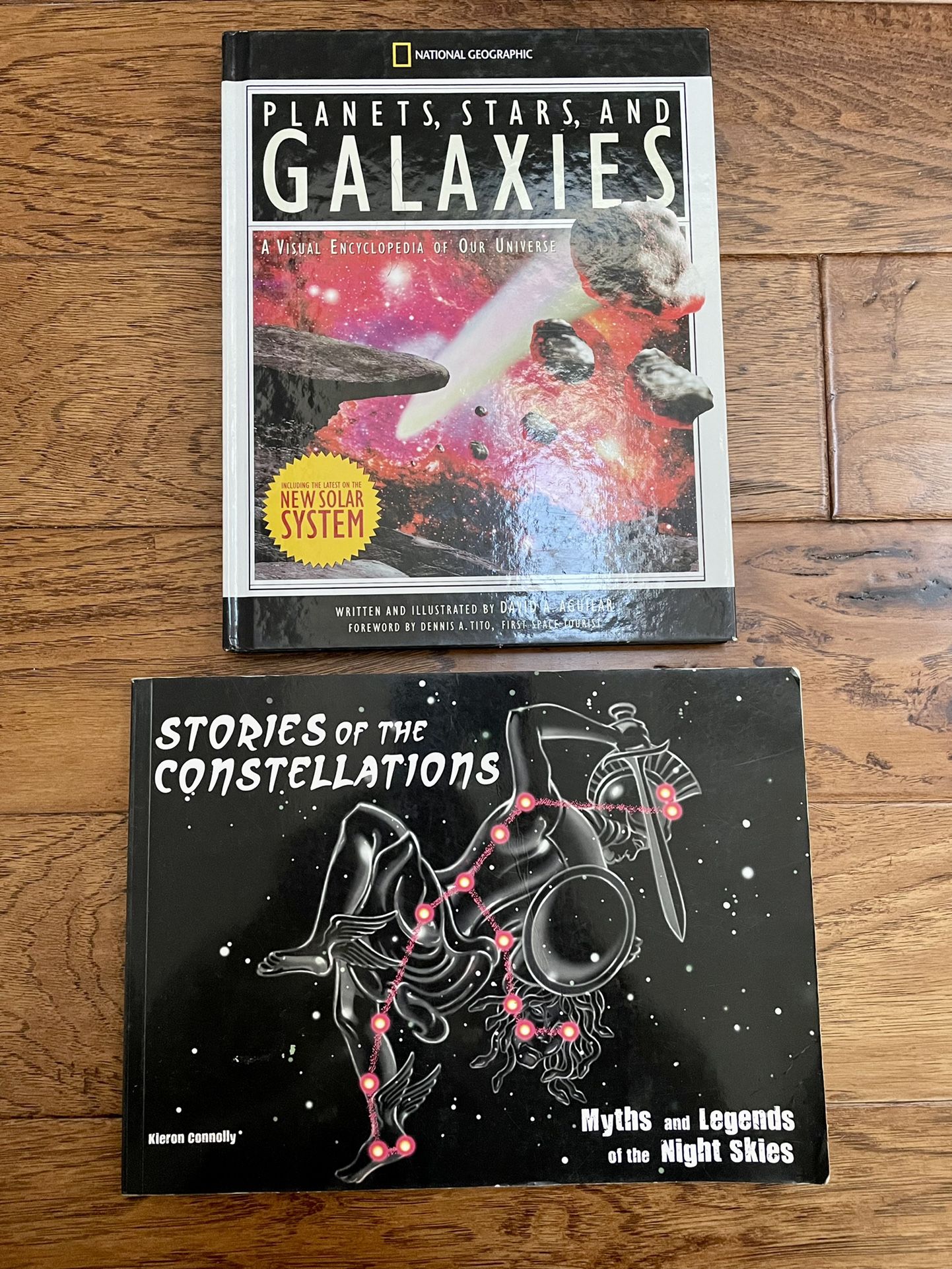 In great condition bundle books : 1. National Geographic: Planets, Stars, And Galaxies - A visual Encyclopedia of Our Universe 2. Kieron Connolly : Stories of the Constellations - Myth and Legends of the Night Skies