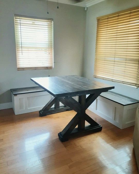 Custom made only. NOT AVAILABLE. Dining nook benches with storage components, farmhouse table. Priced accordingly per size.