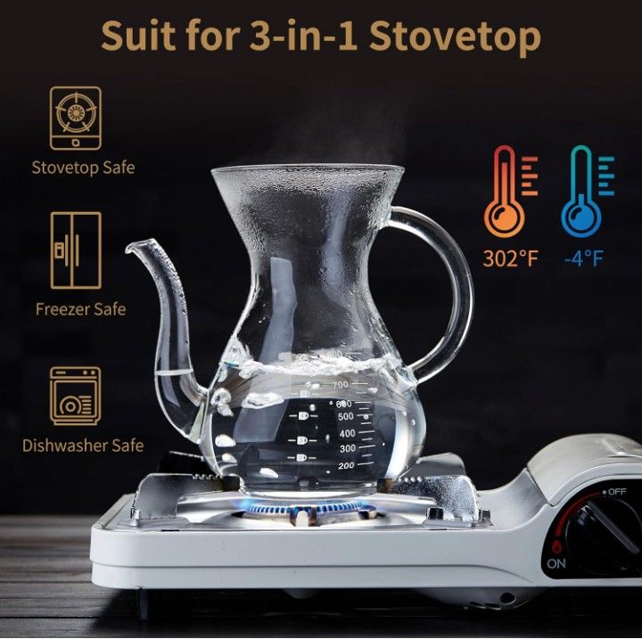 Coffee Maker with Double Stainless Filter 8-Cup, Thickened Heat-Resistant Borosilicate Glass Pour Over Coffee Dripper, Stovetop Safe