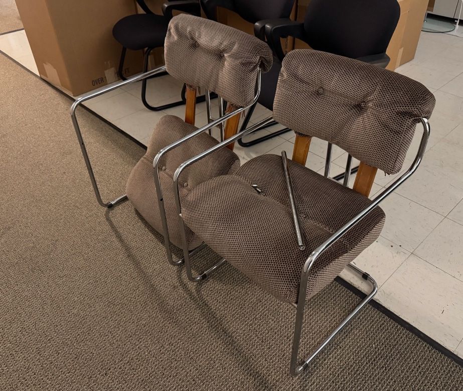 Set of two vintage Guido Faleschini Tucroma chairs from the 80’s for sale. Chairs in great condition, but one chair bar has a broken bolt that needs to be replaced. Just moved and they don’t fit with our space anymore. Selling online for $1500 or more each. https://offerup.com/redirect/?o=aHR0cHM6Ly93d3cuMXN0ZGlicy5jb20vZnVybml0dXJlL3NlYXRpbmcvZGluaW5nLXJvb20tY2hhaXJzL2xlYXRoZXItdHVjcm9tYS1jaGFpci1ndWlkby1mYWxlc2NoaW5pLW1hcmlhbmktc2lnbmVkL2lkLWZfNDA4Njc2NzIv