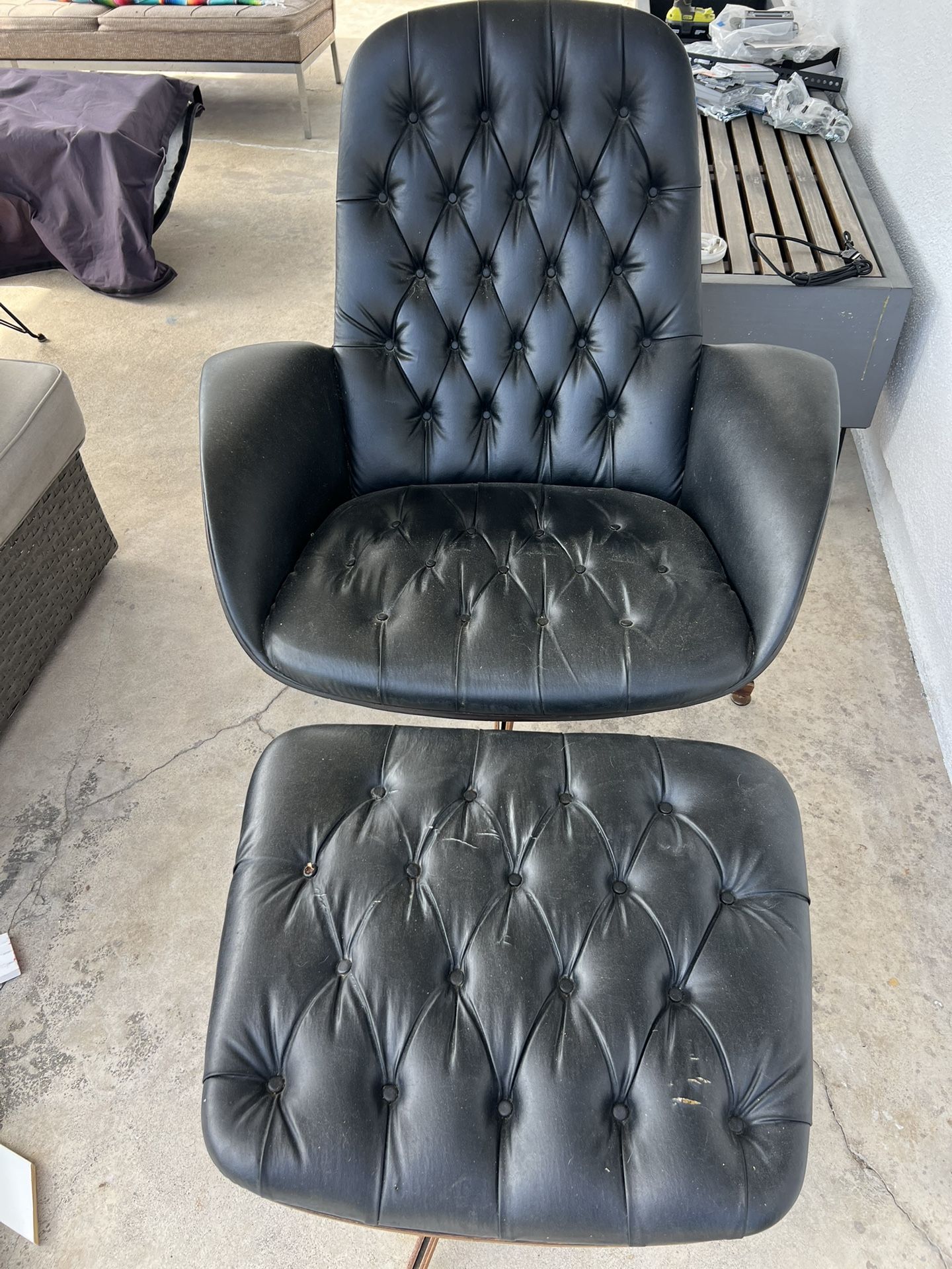 Amazing vintage Midcentury Modern plycraft Mulhouser Lounge chair with matching ottoman. Swivels and tilts nicely. The leather could use some love and has some minor tears on ottoman and on one button. Wood is in great shape and would make an excellent addition to any home. Please don’t low ball with offers, these are well worth the asking price.