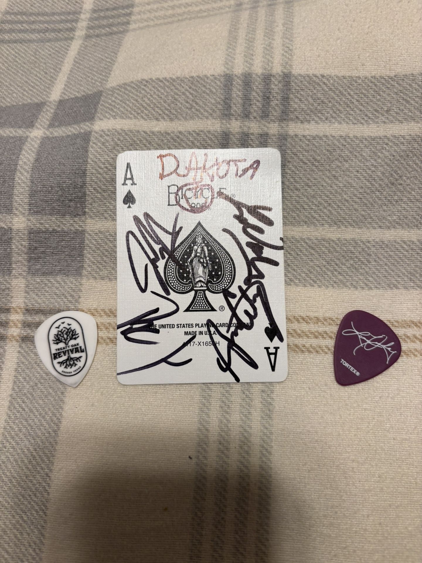 This is a playing card signed by all the members of the band treaty oak revival during their 2025 tour. Also comes with 2 picks they played with! MAKE AN OFFER!