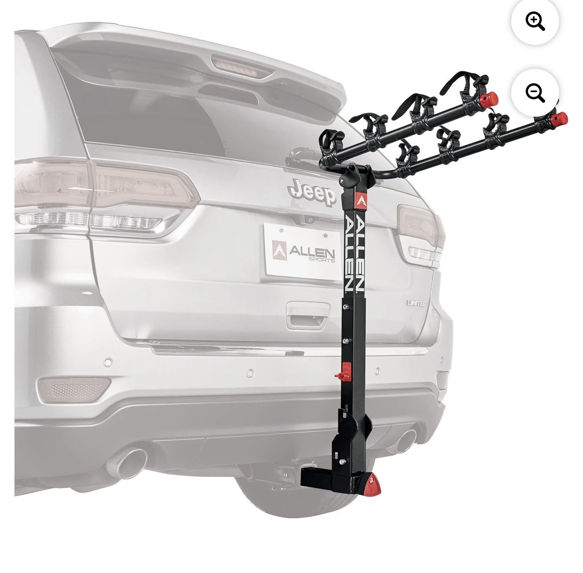 Allen Sports Deluxe+ 4-Bike Hitch Rack Carrier fits 2 in Receiver Hitch Brand New/Open Box - Guarantee all Pieces are Included Pick up in Rolling Meadows, Waukegan, Park Ridge or Norridge • 140 LB capacity (35 LB per bike). Never use on trailers • Internal tilt-away release allows for easy lift gate access • Accommodates a wide range of bicycle frame designs • Quick set carry arms snap into place and fold out of the way when not in use • Patented tie-down cradles & quick-set straps individually secure and protect bicycles • Quick install locking hitch insert fits 2 in. receiver hitches; includes 2 keys
