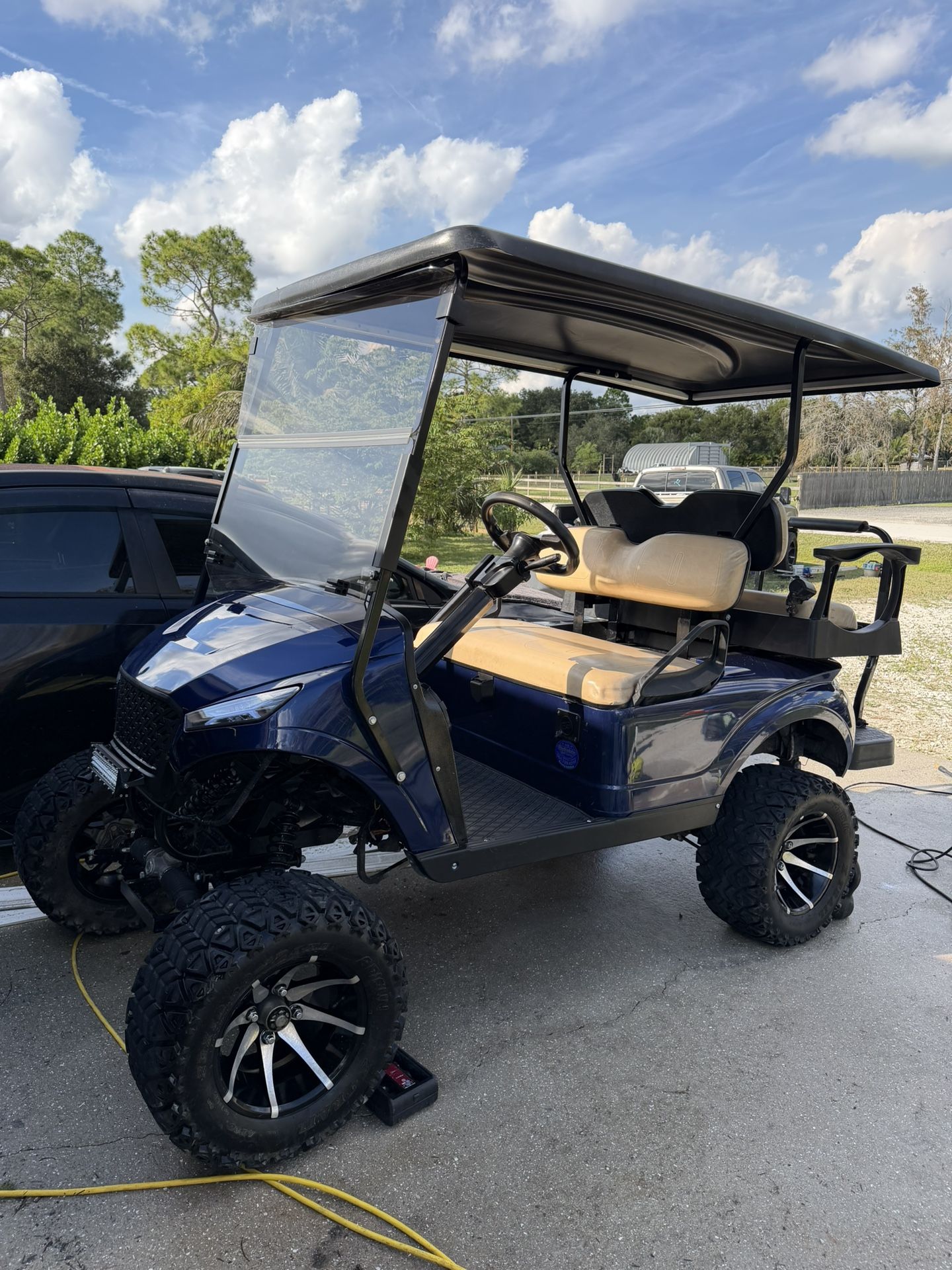 2001 Ezgo TXT Golf Cart 2001 Ezgo Txt with Storm Body, 8” All Sports Lift Kit, Navitas Eco Battery lithium, 70.4V, 105AH, Navitas 600A Controller, Navitas Motor, LED light bar, turn signals, 6” Kicker Speakers, Pioneer head unit, Cart can go over 45mph but can be turned down to lower speeds and adjustments on the fly for regen braking, acceleration and speed.