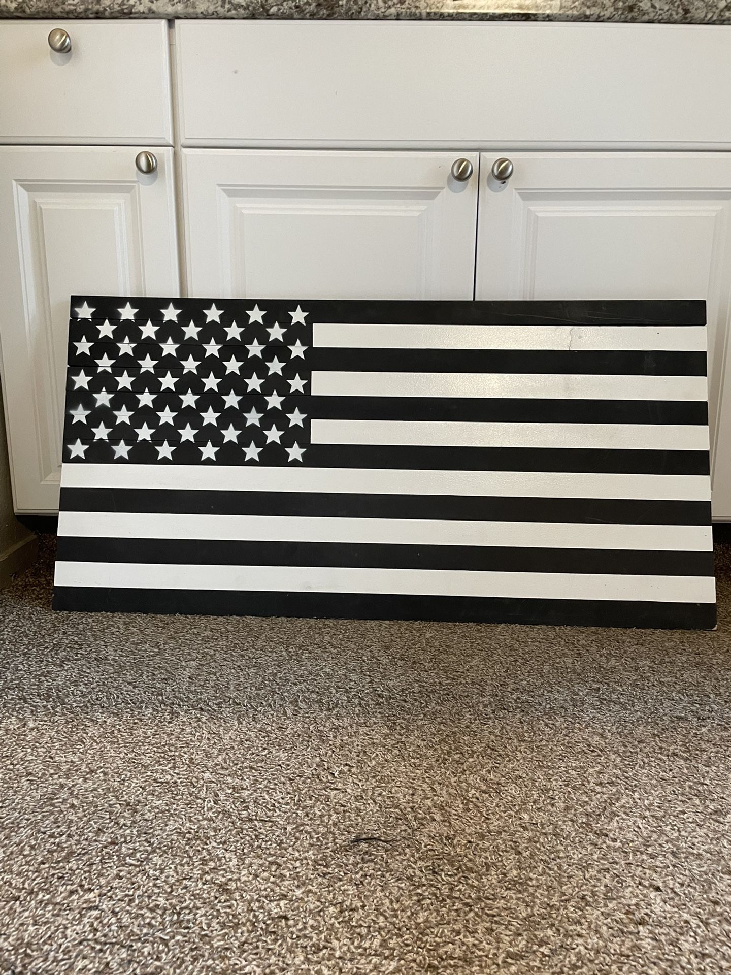 Two of the boards need to be glued back together and hooks need to be added . Homemade Wood flag .