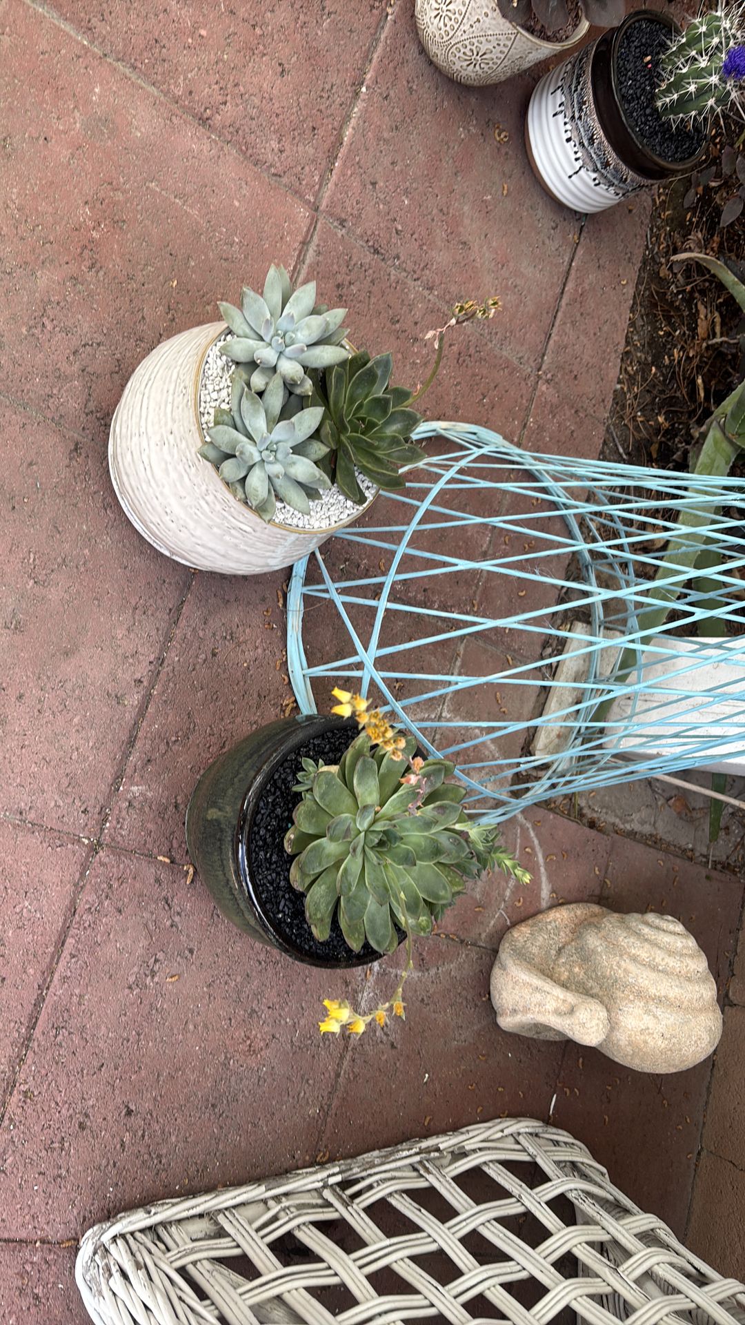 Succulents in glazed pots