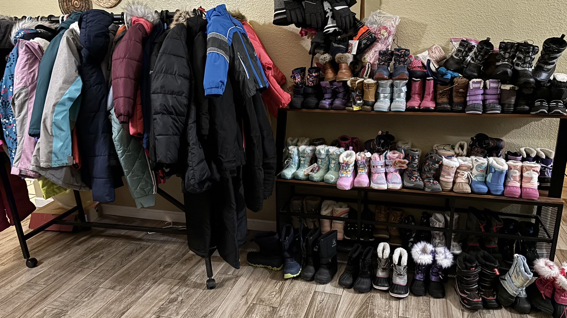 Snow /winter jackets, pants-bib gloves boots kids size-adult sizes only brand new start $20 and up