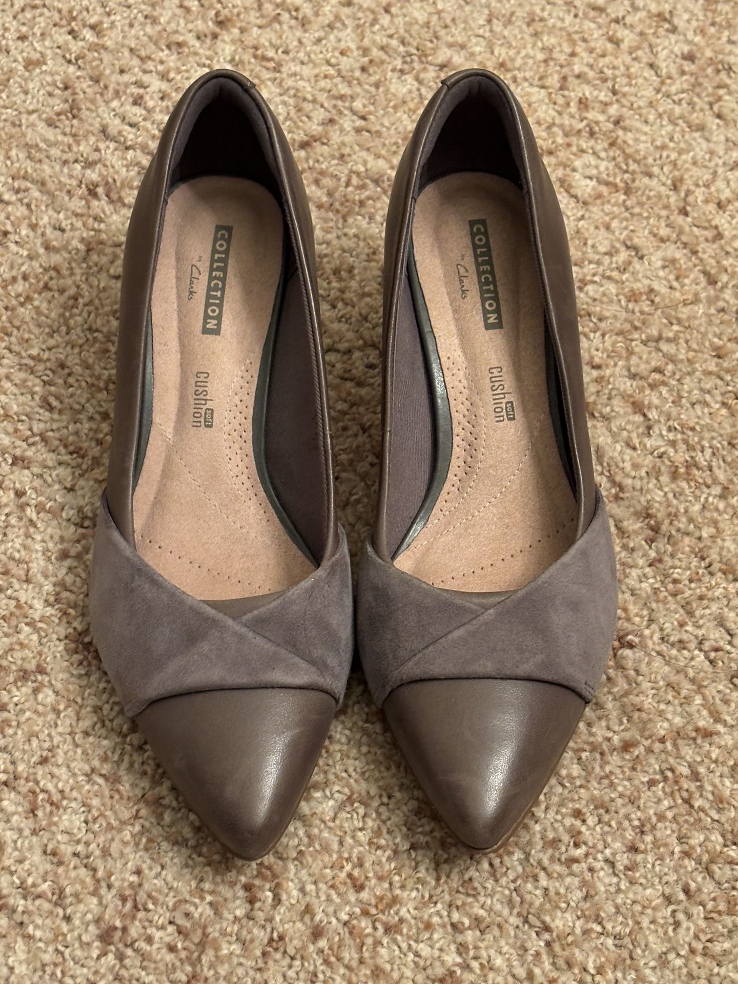 Clarks Grey Combi women’s heels. Like new. Size 6 1/2. Available for local pic up in south Arlington. Cash only.