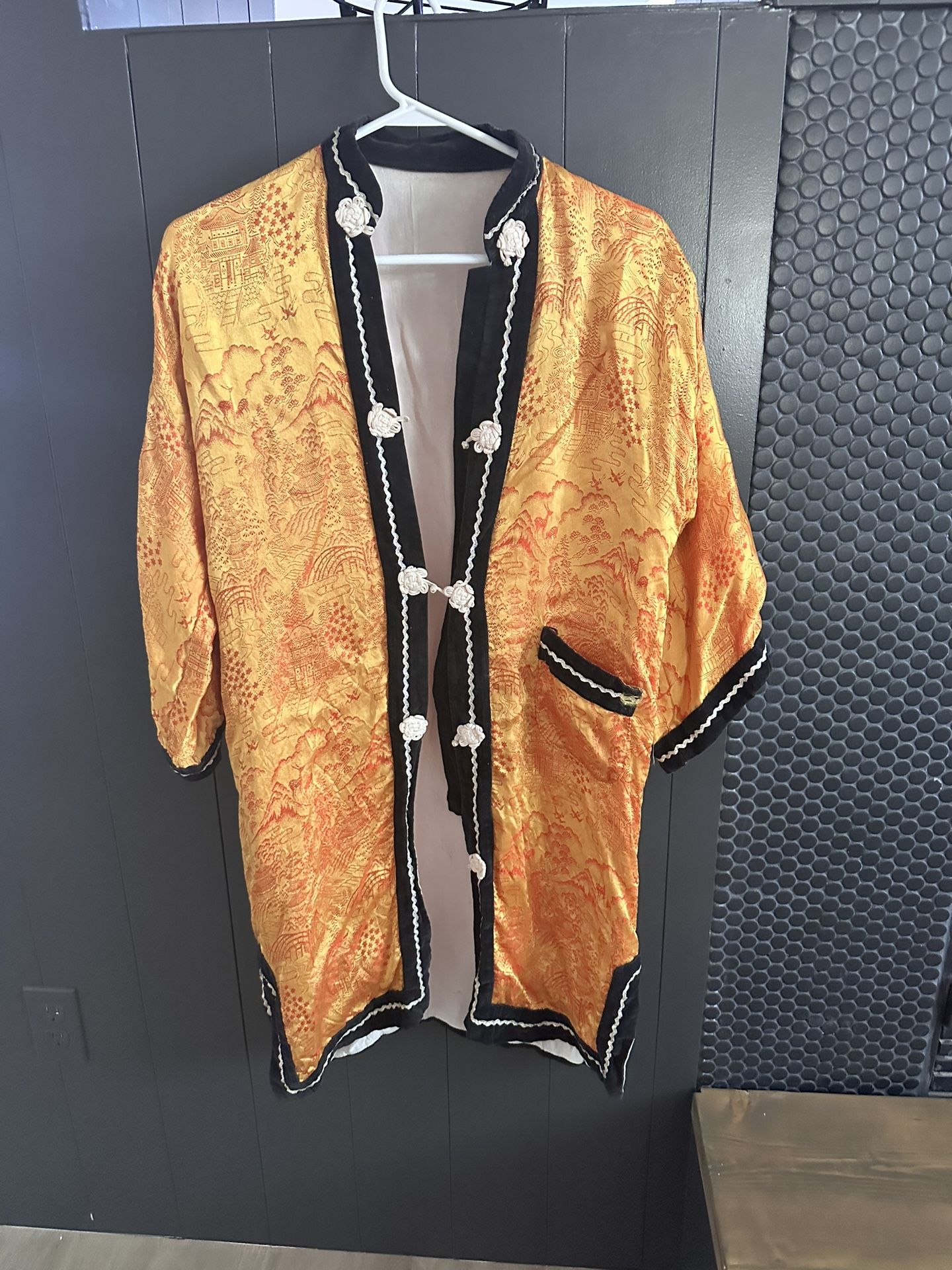 Vintage Womens Yellow Brocade Kimono Size S/ Japanese Yellow/Black Brocade Kimono Robe/ Asian Silk Kimono/Korean Brocade