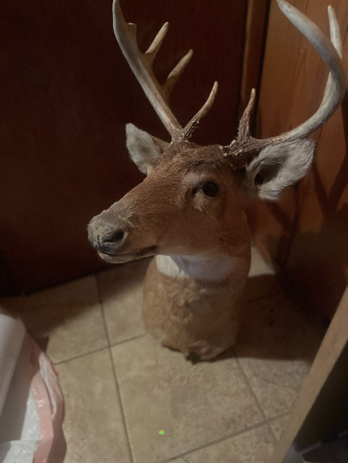 Vintage deer head mounted ready to hang up for the holiday season. Was my uncles who caught it himself once he passed away i inherited it but it just doesn’t match my style lol would love to see it go to a good home