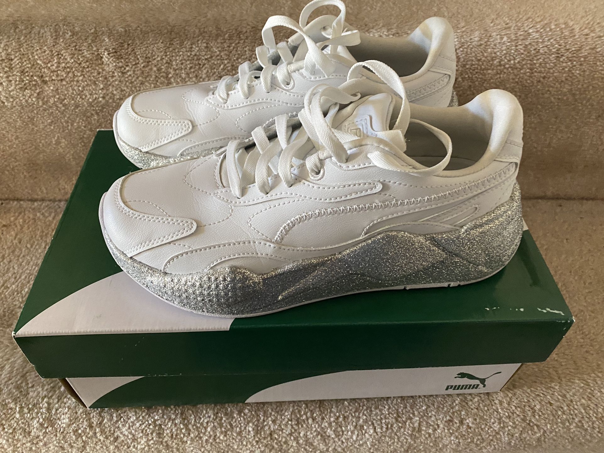 Size 7.5 Women Puma RS-X3 Glitz White Silver Shoe New with box